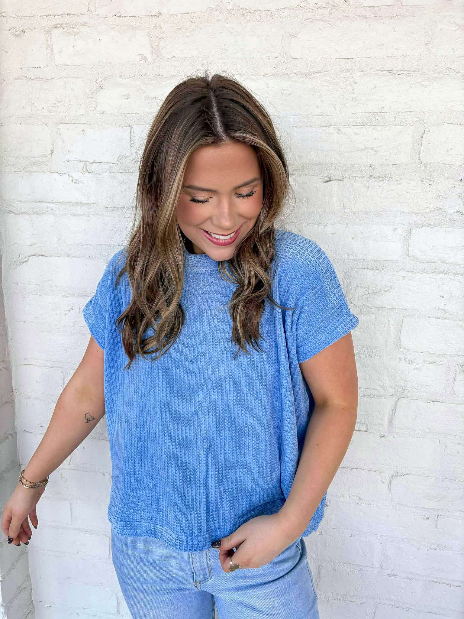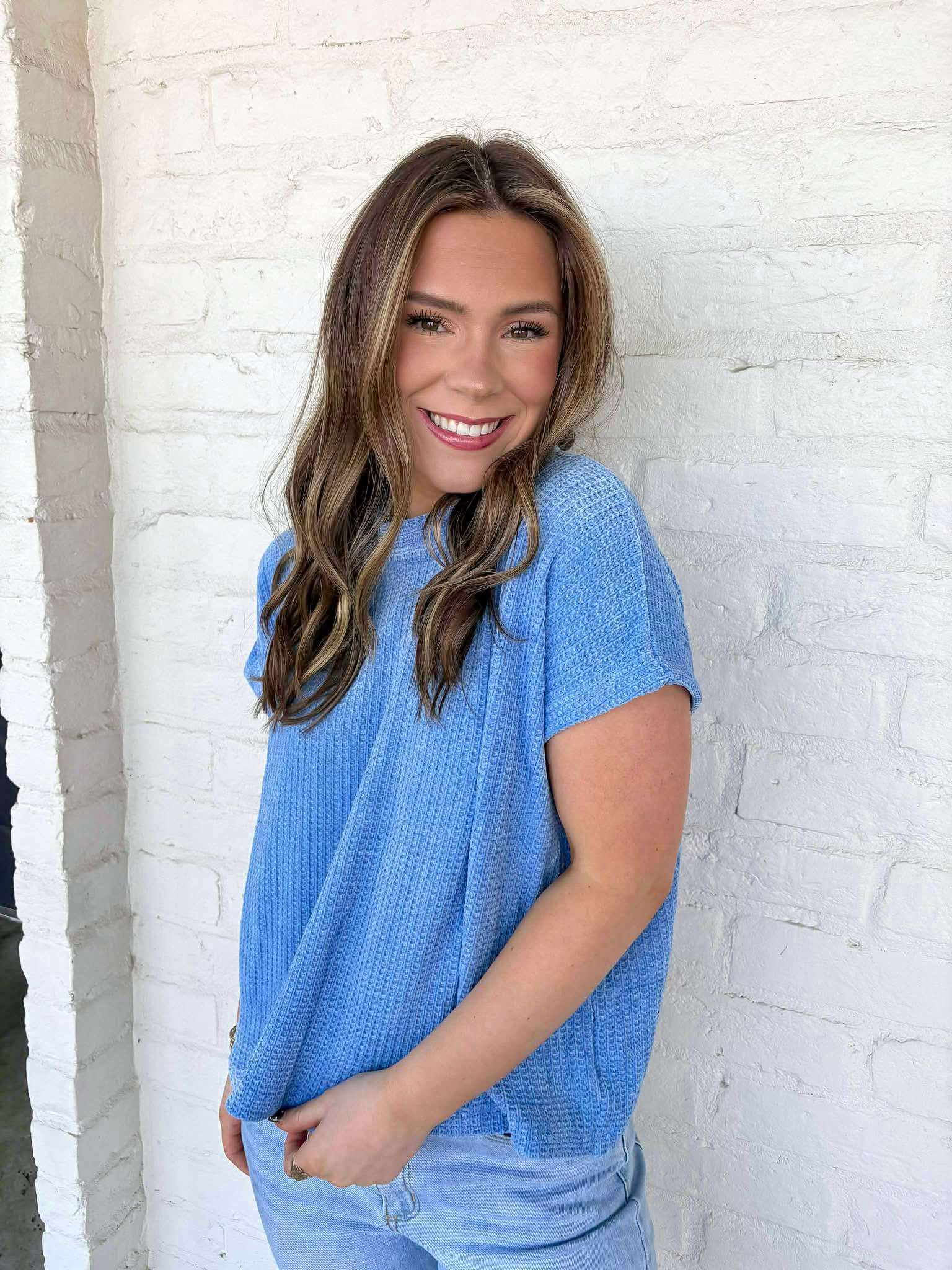 Indulge in the cozy comfort of our Get Comfy Blue Top. Made with soft sweater material, this top is perfect for chilly days and cold nights. Stay warm and stylish with its timeless design. Elevate your wardrobe and embrace comfort with this must-have addition!