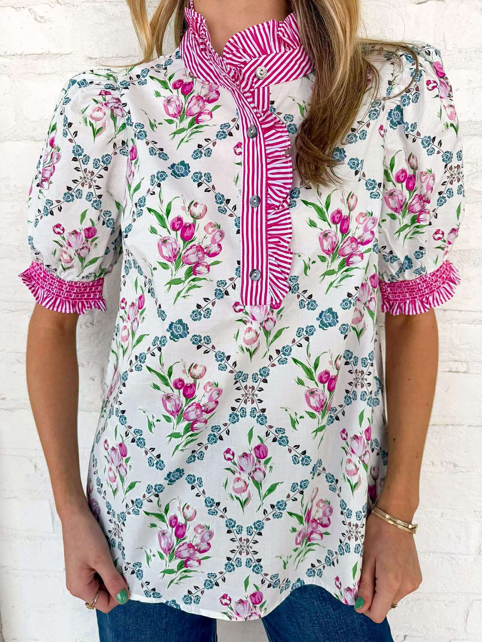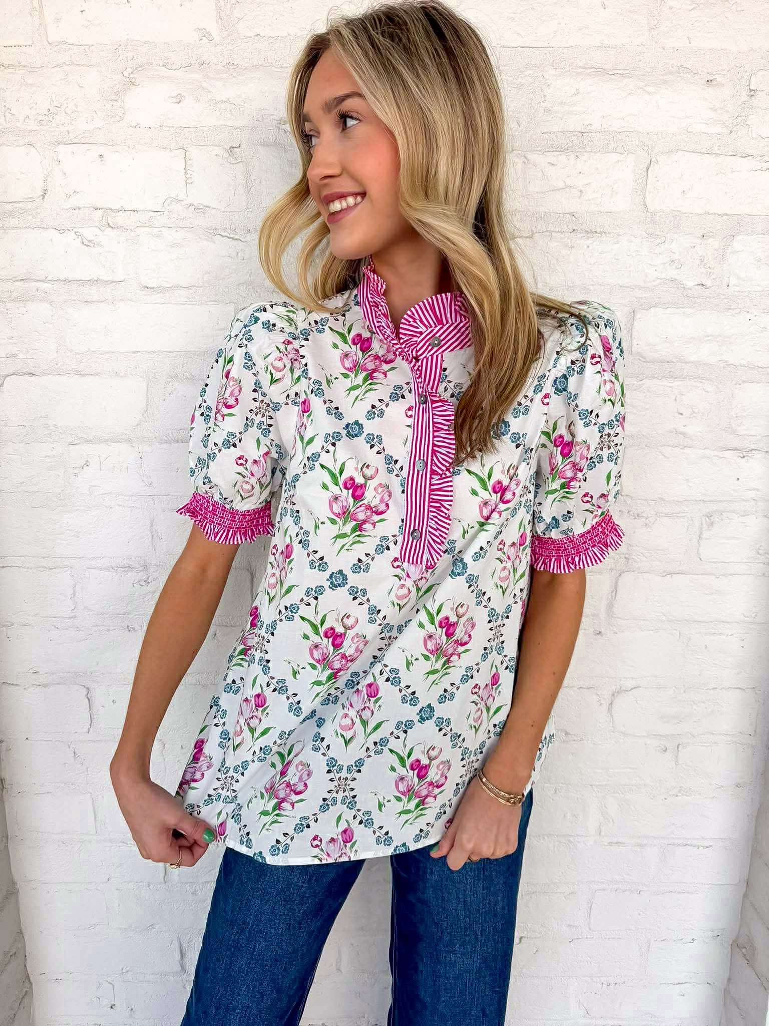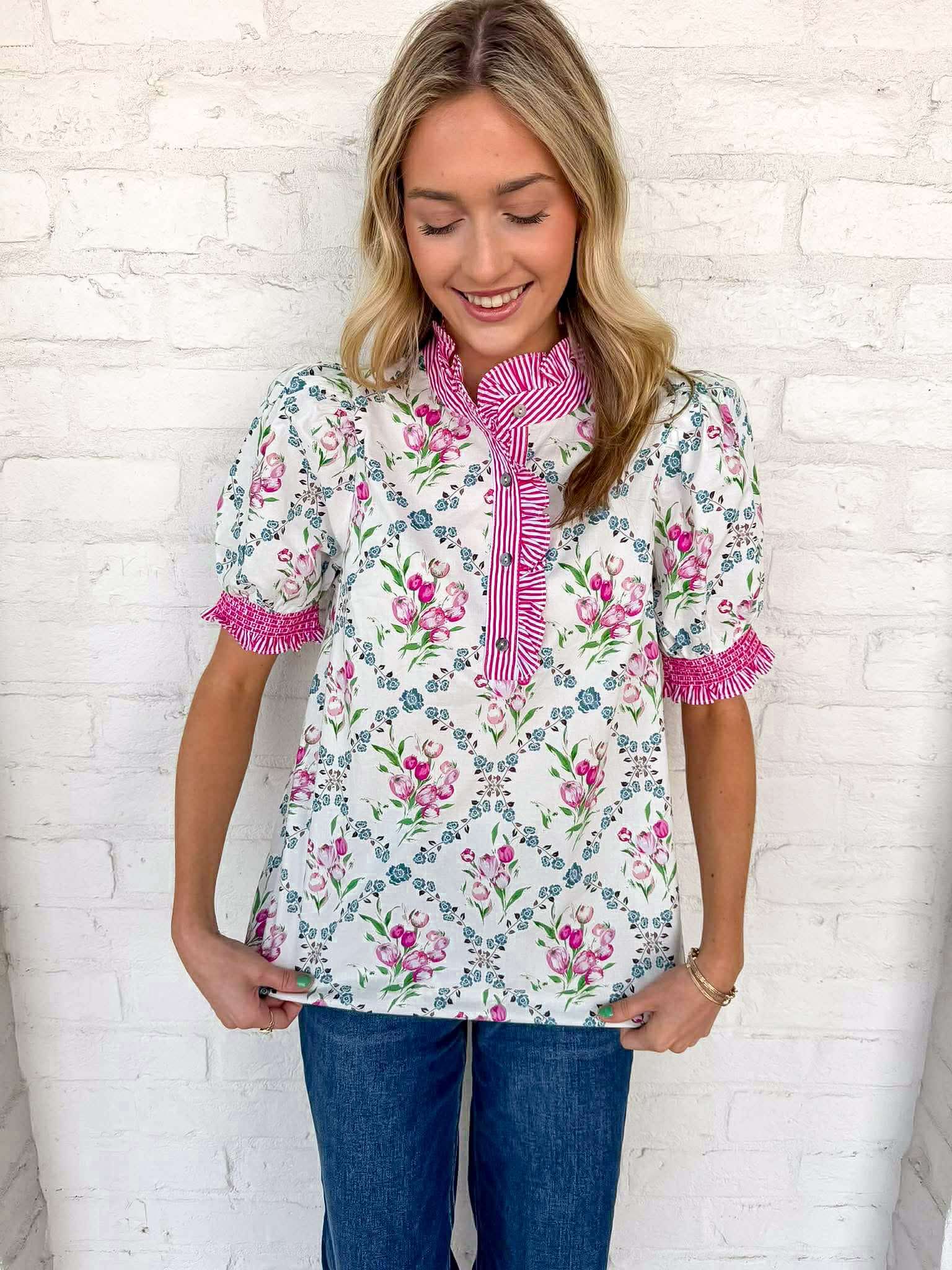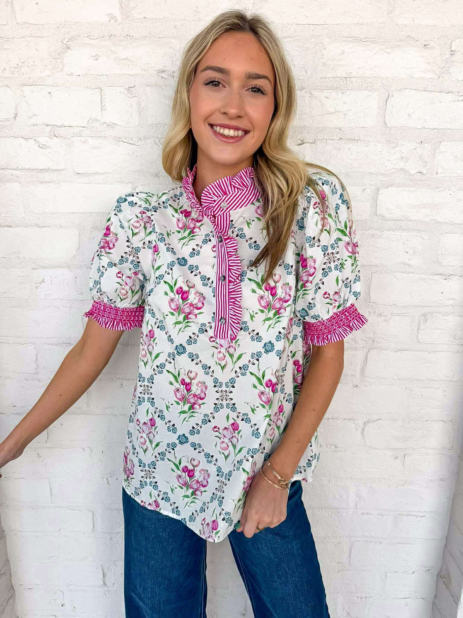 Embrace your style with the Keep Your Promises Cream Top! This enchanting floral blouse offers a refreshing touch to any wardrobe, evoking a sense of elegance and charm. Its delicate design effortlessly elevates your outfits, making it perfect for both casual outings and special occasions. Wear it with confidence and let your beauty bloom!