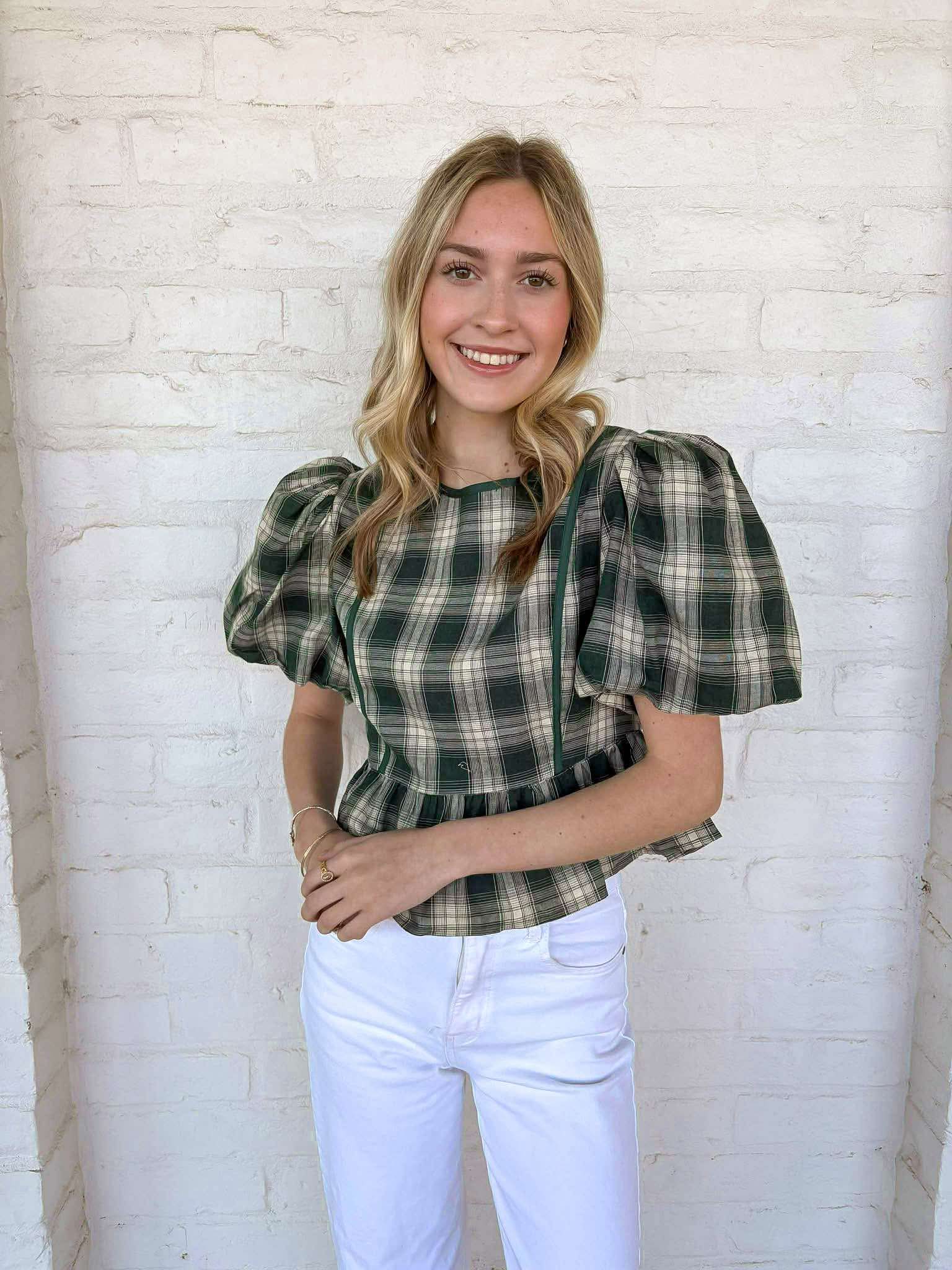 Unleash your unique style with our Live Your Life Right Green Plaid Blouse. The flattering poof sleeves add a touch of elegance to any outfit, while the timeless plaid pattern is perfect for any occasion. Embrace your individuality and make a statement with this must-have piece!