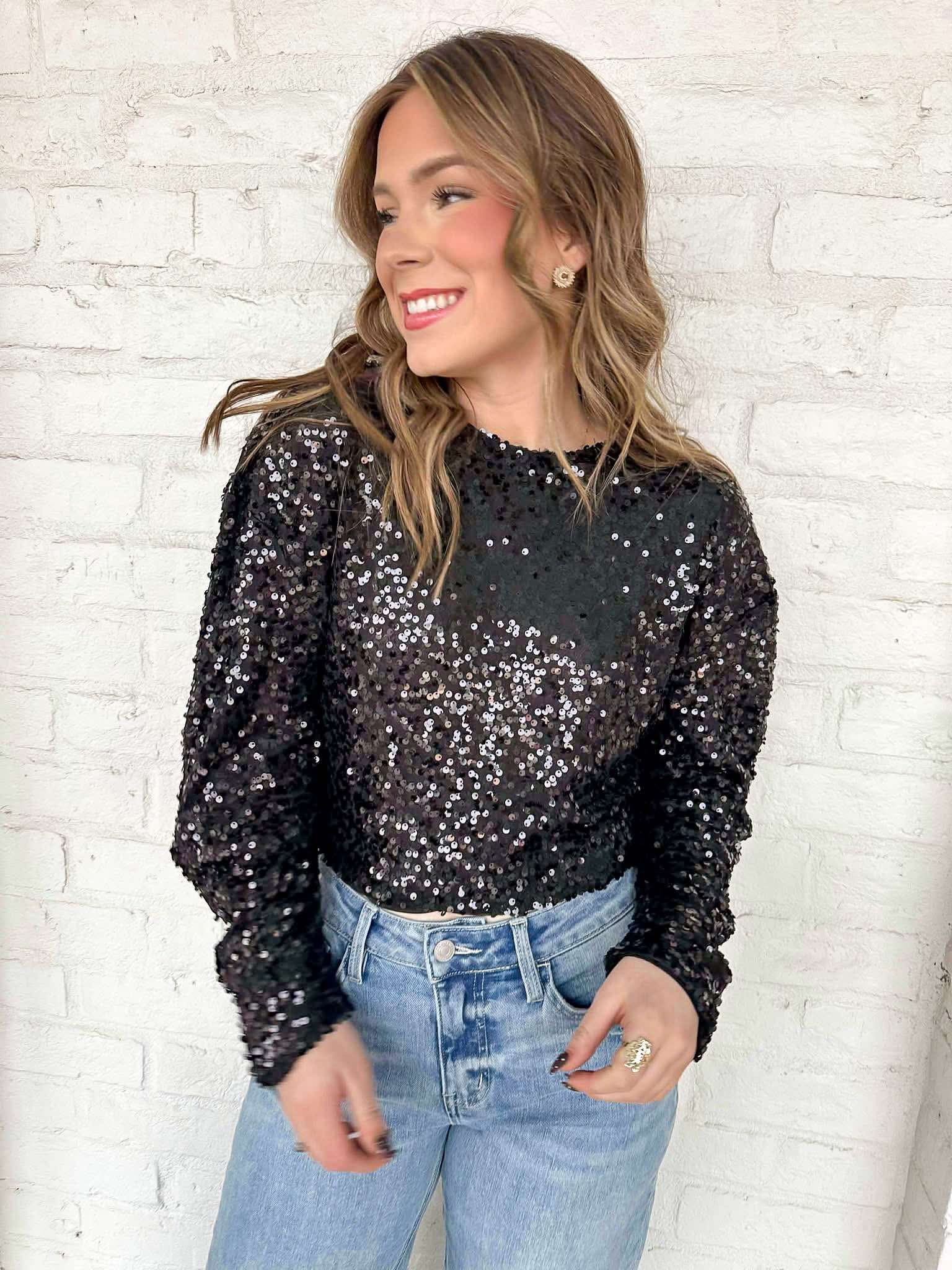 Sparkle your way into the new year with our Glitter Glam Top! This top will add a touch of glamour to any outfit, perfect for all your celebratory occasions. Look and feel fabulous with the shimmer and shine of our New Year Welcomes Black Top.