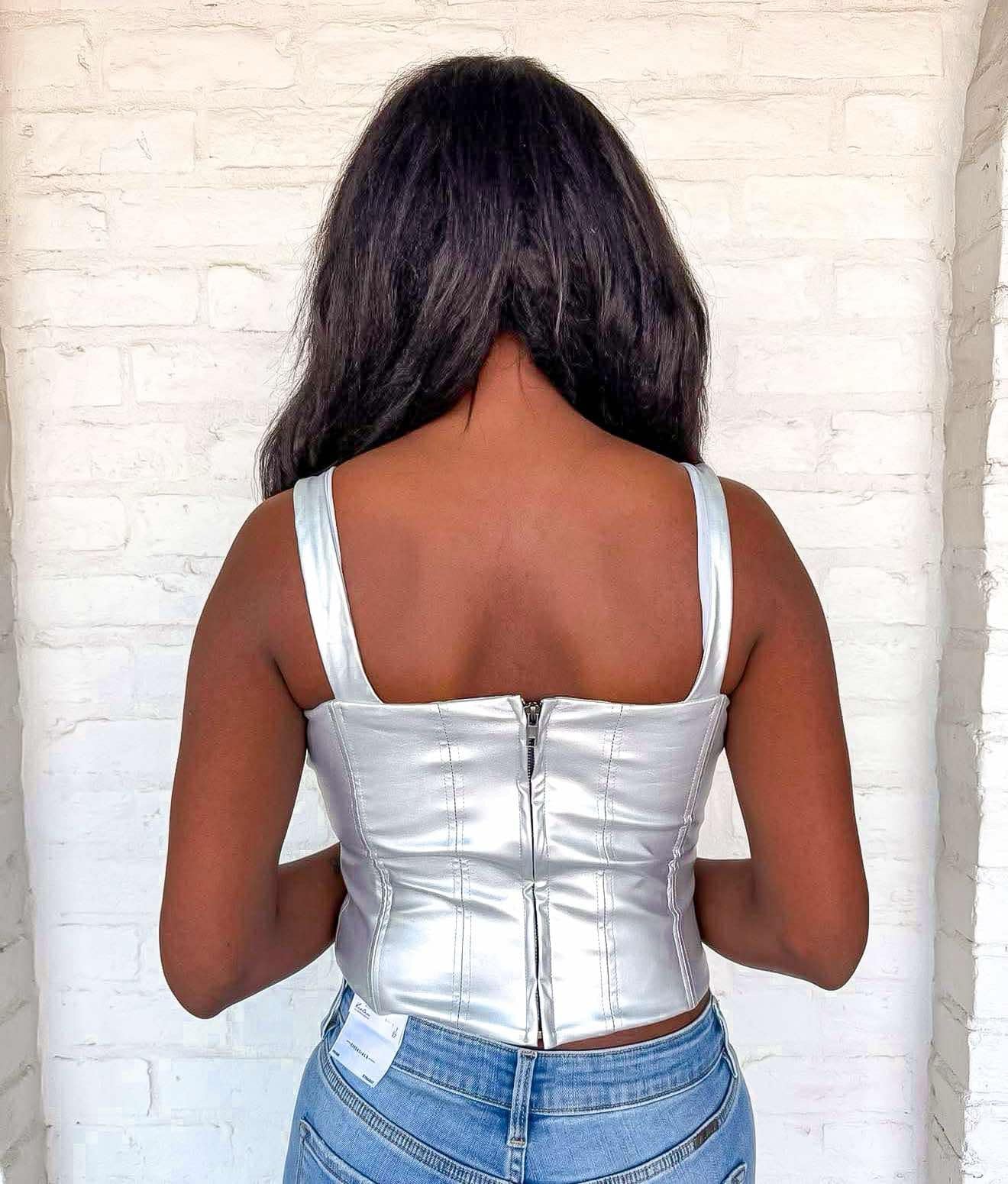 Experience the luxe comfort and style of our Not The Only One Top. This bustier leather top features a flattering round neck strap for a unique and sophisticated look. Elevate your wardrobe and make a statement with this must-have piece.