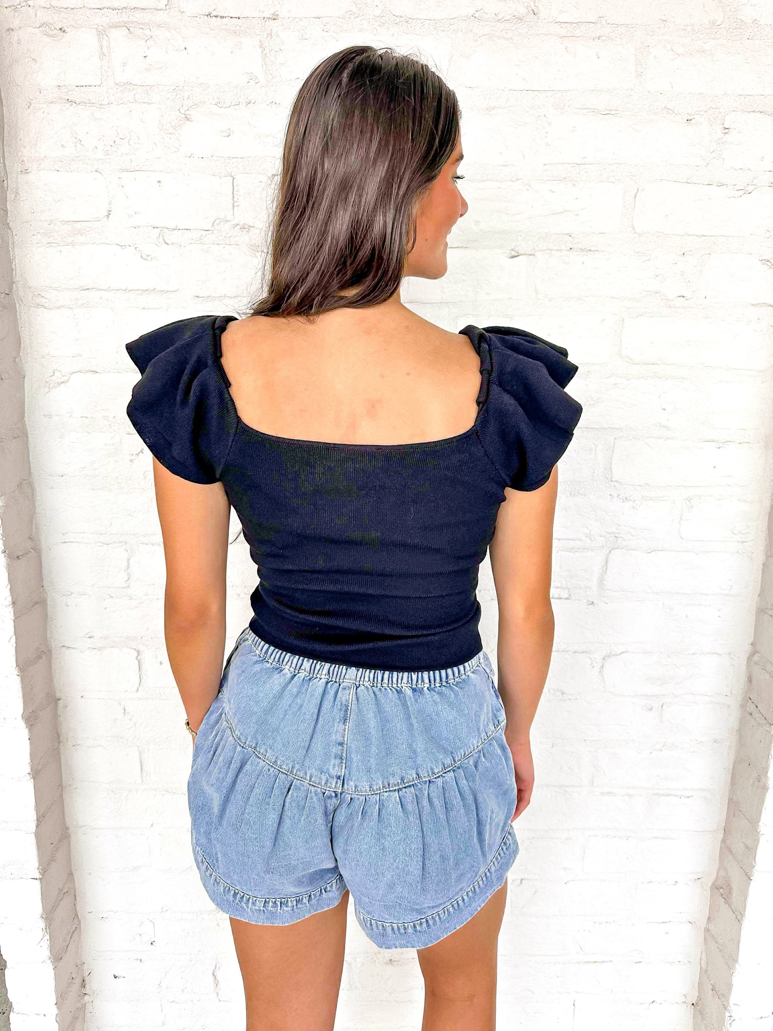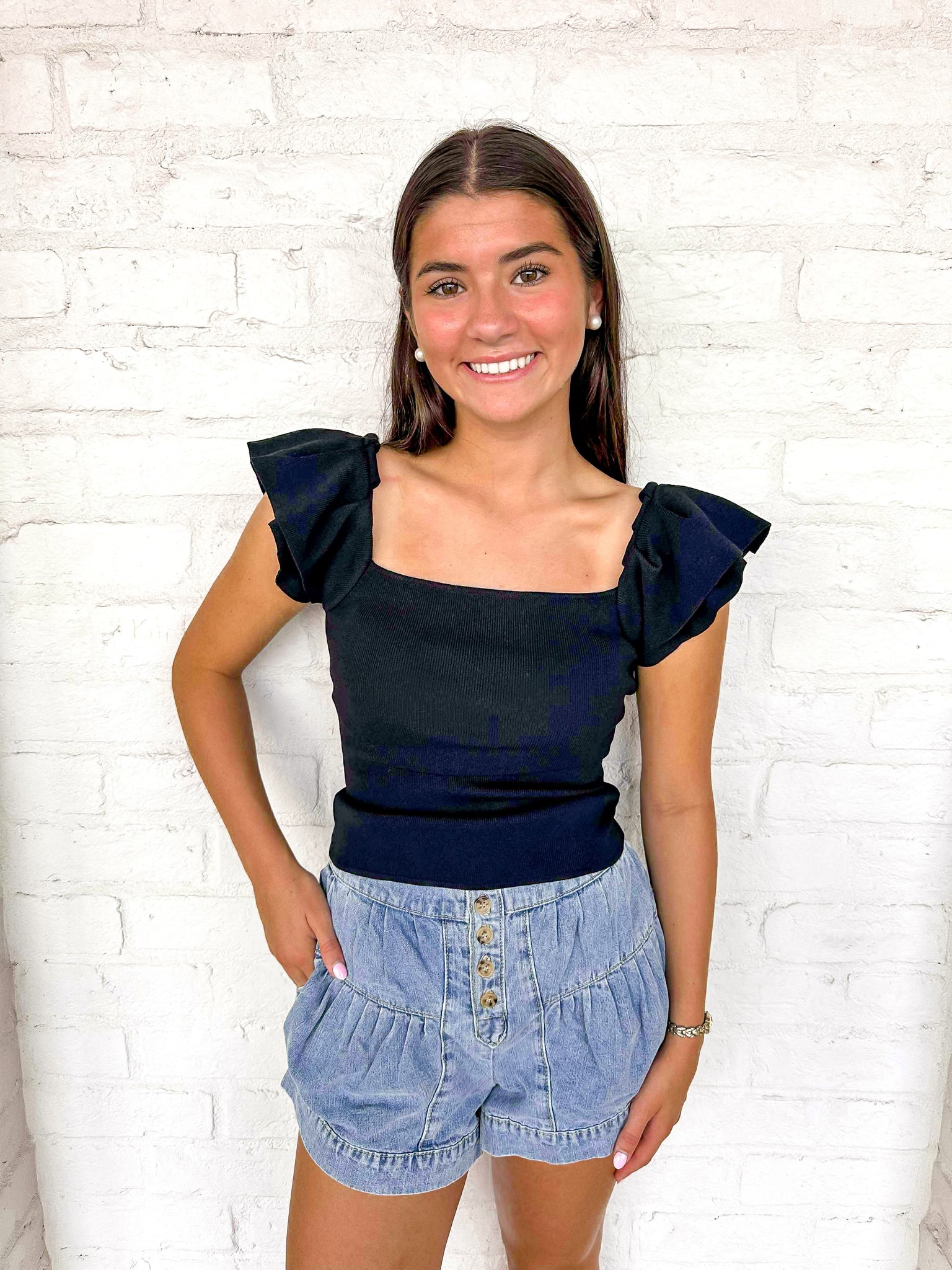 Elevate your style with our Over By Now Top! This ribbed knit sweater features ruffled tiered cap sleeves, adding a feminine touch to any outfit. Stay cozy and stylish all day long with this must-have staple piece.