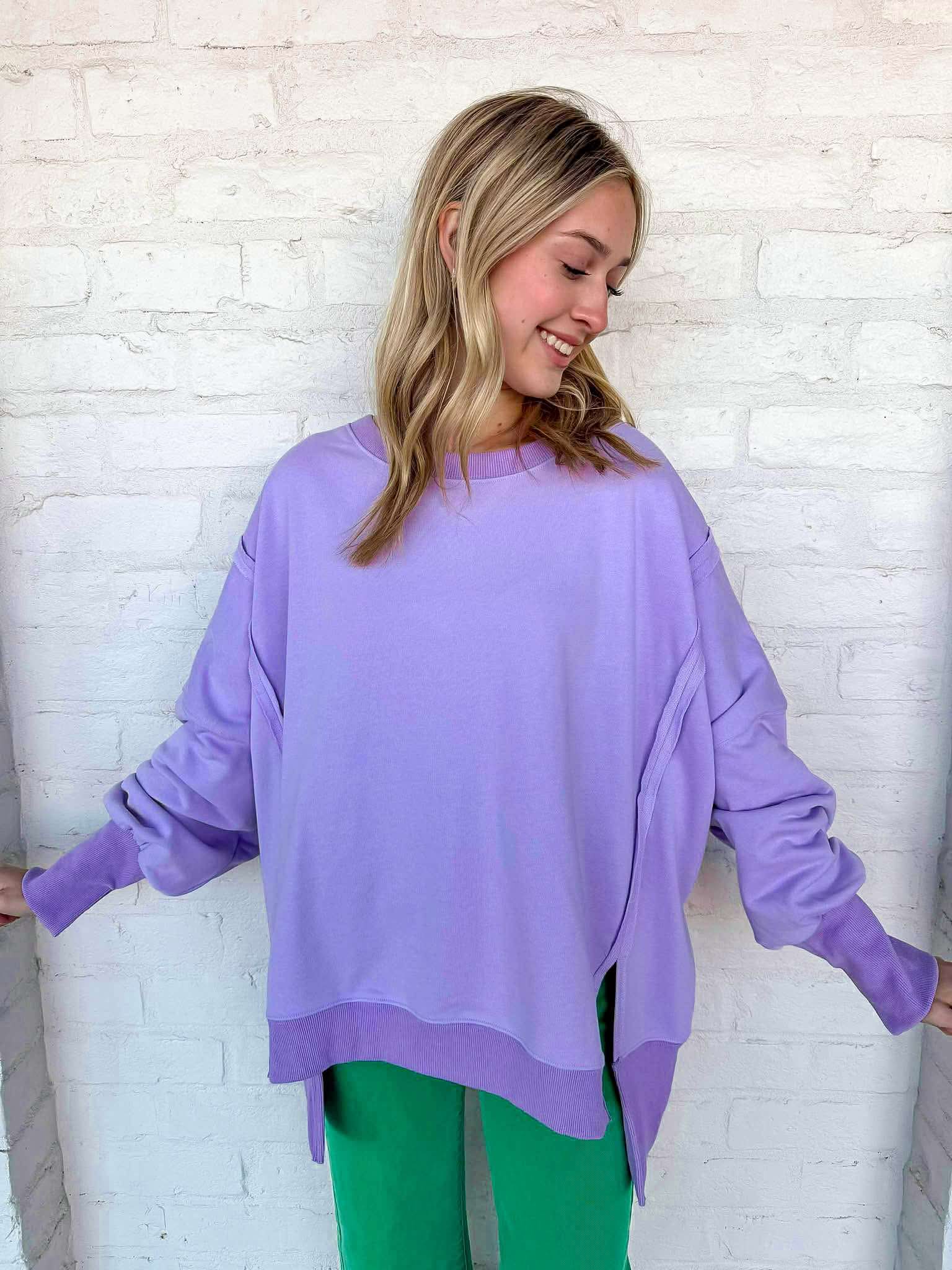 Elevate your casual wardrobe with the Purple Solid French Terry Hi-low Oversized Sweatshirt! This Mardi Gras basic combines comfort and style, making it perfect for celebrations or lounging. The soft fabric hugs you in warmth while the trendy hi-low design adds a flair that inspires confidence. Step out and shine!