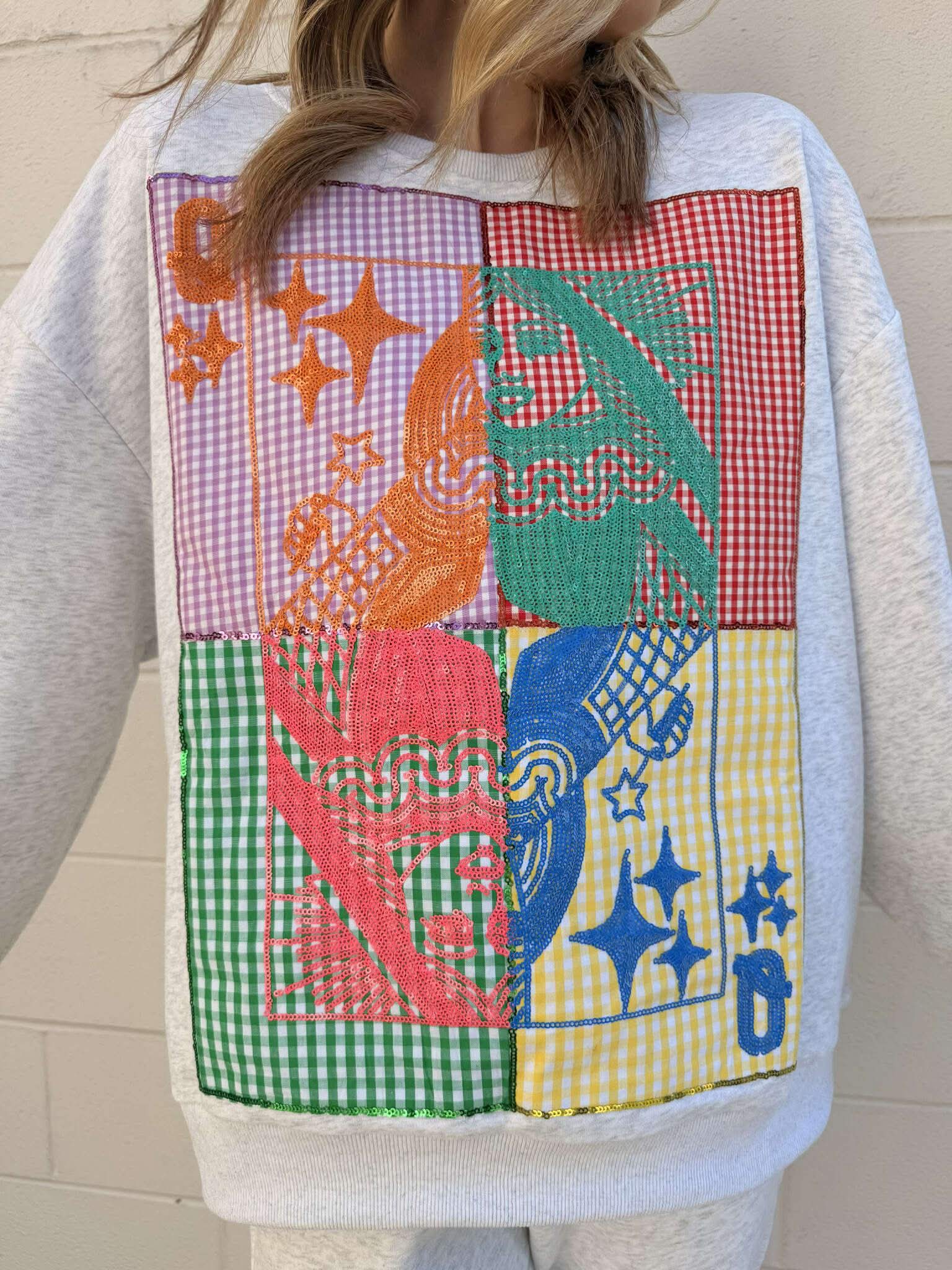 Queen Of Sparkles Grey Colorblock Gingham QOS Card Logo Sweatshirt