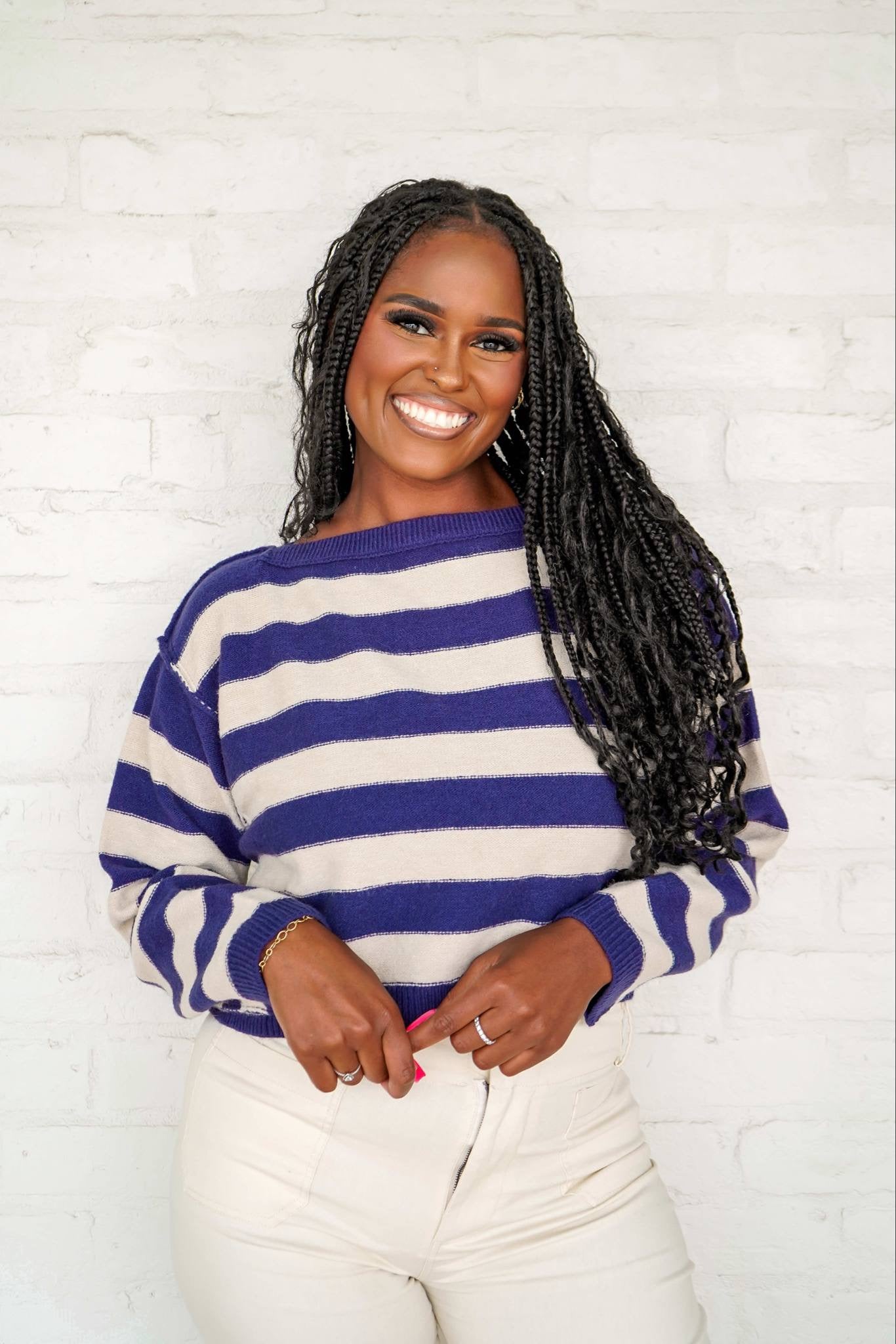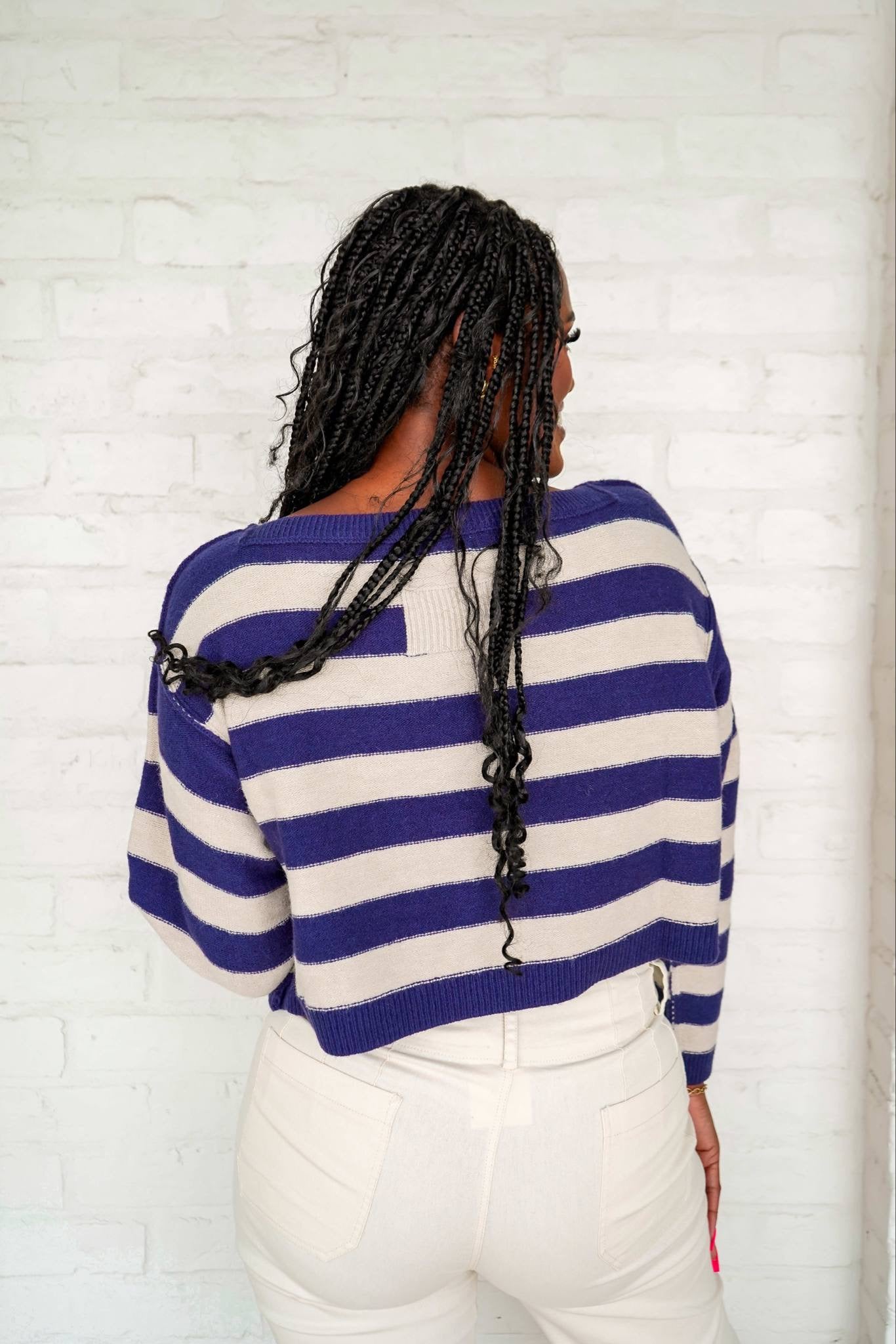 The More To Come Sweater is designed for those who live life to the fullest. Made with stripe exposed seams, this long sleeve sweater provides a unique look while keeping you cozy and warm. Its cropped fit adds a touch of playfulness to any outfit. Embrace your adventurous spirit and display it proudly with this must-have sweater.