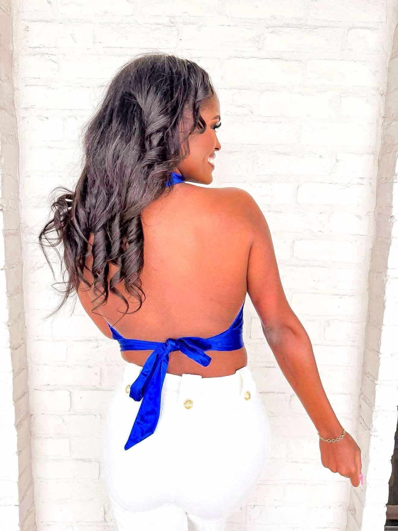 Indulge in a touch of summer with our Skies Above Halter Blue Top! This open back mock neck halter top combines style and comfort, perfect for any warm-weather occasion. Feel free and confident as the halter design flatters your figure and the mock neck adds a touch of elegance. Embrace the sunshine in this must-have top!