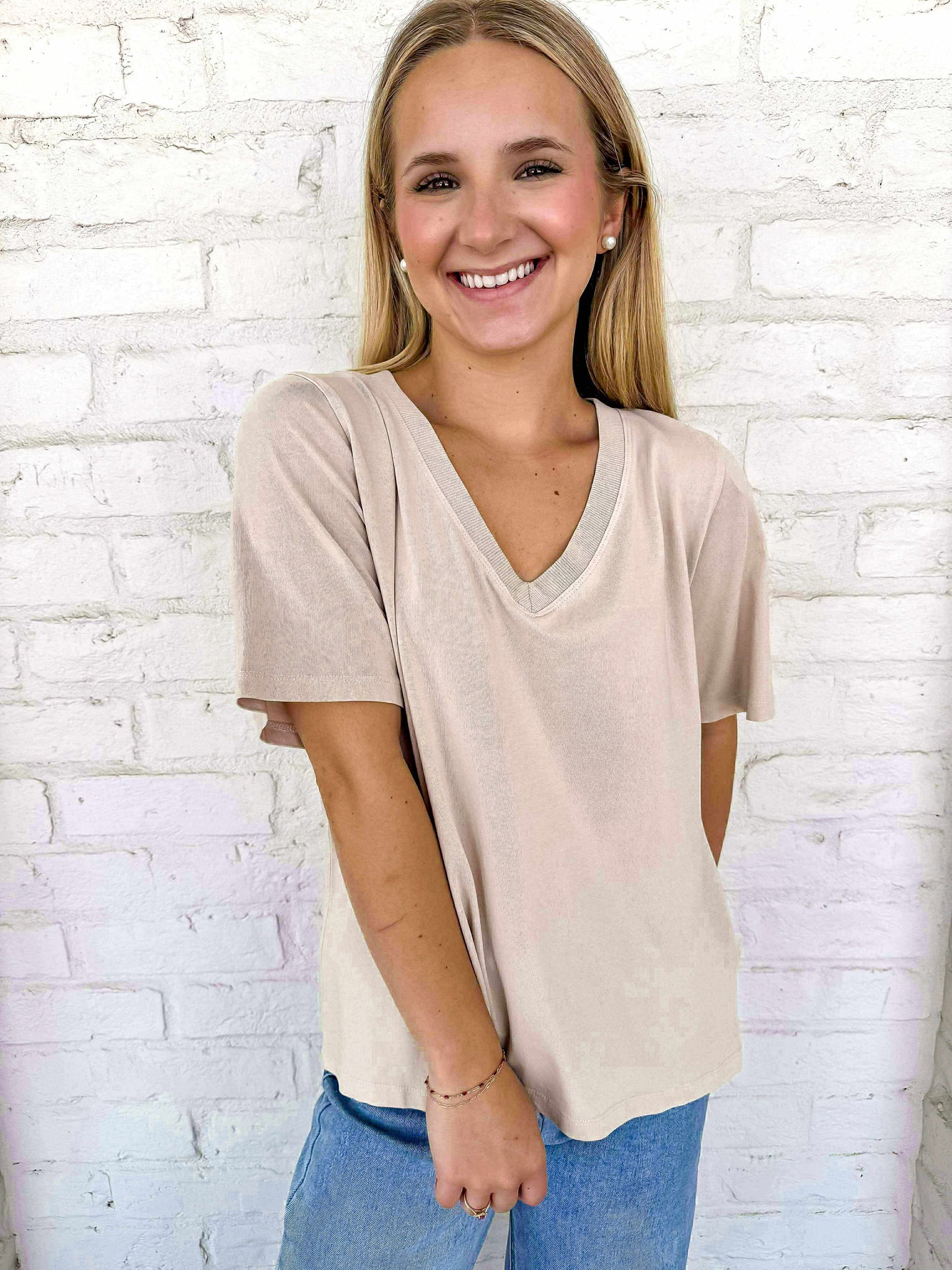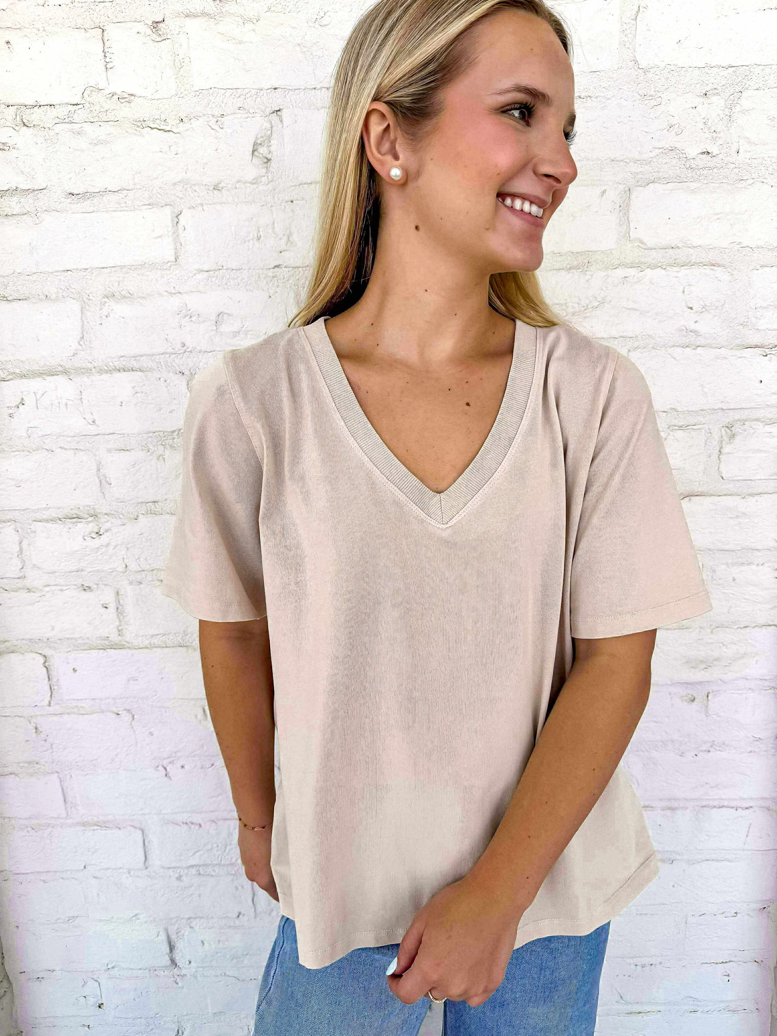 Unleash comfort and style with our Soft And Comfy Top! Featuring a Mono B V-neck design, short sleeves, and clean straight hem, this top is made from 95% Pima cotton and 5% spandex for the ultimate softness and stretch. Elevate your wardrobe with this must-have piece.