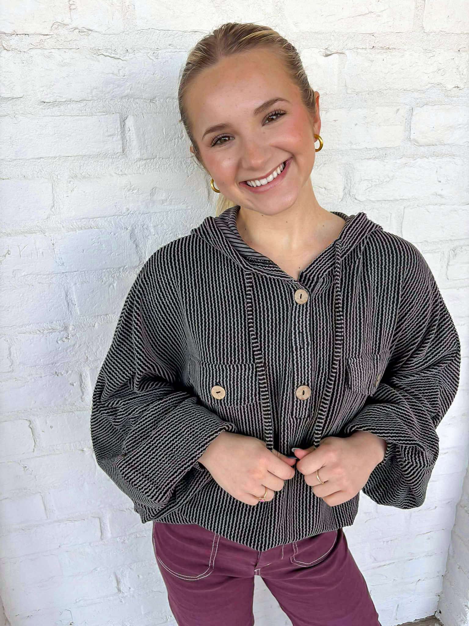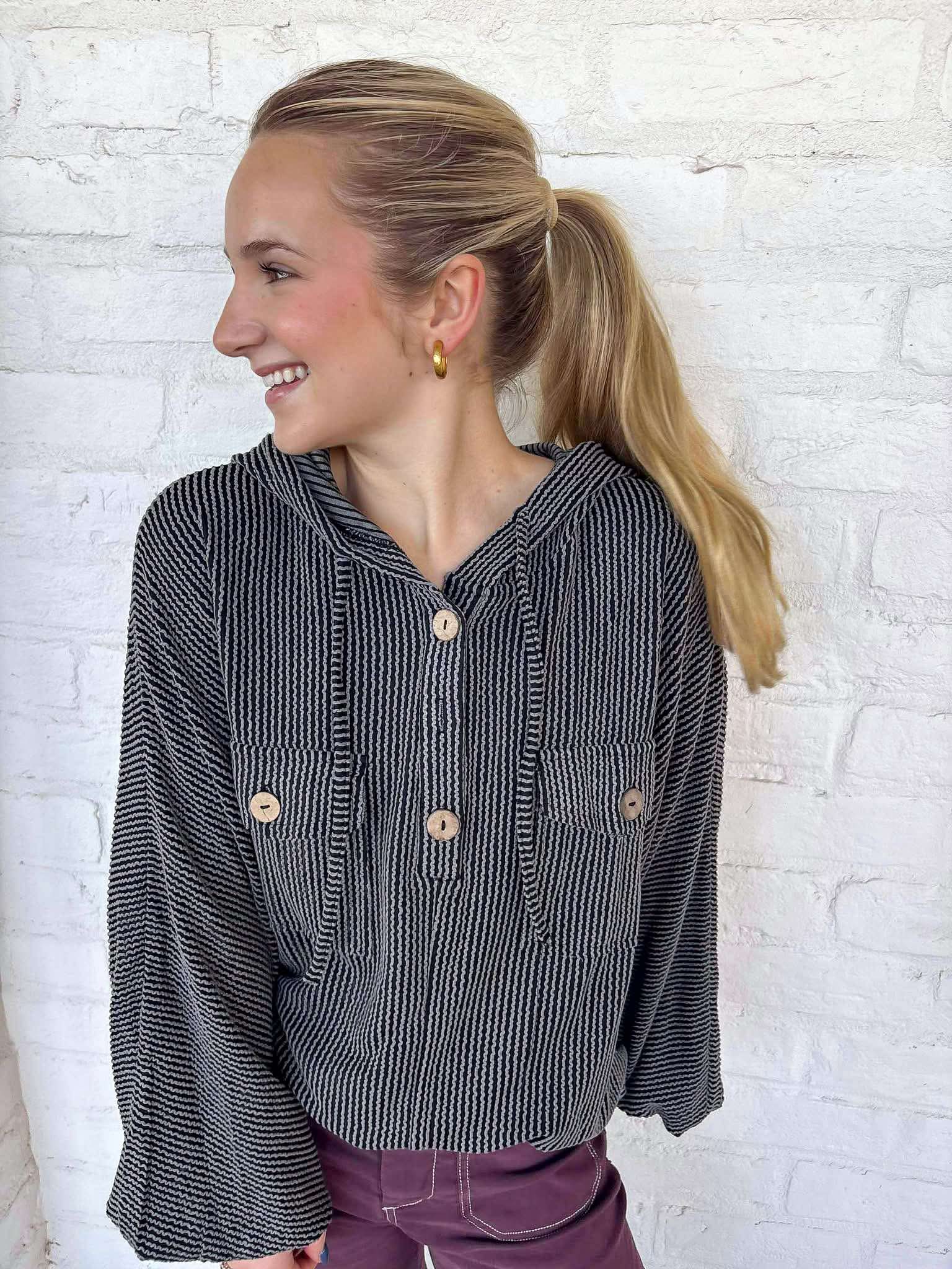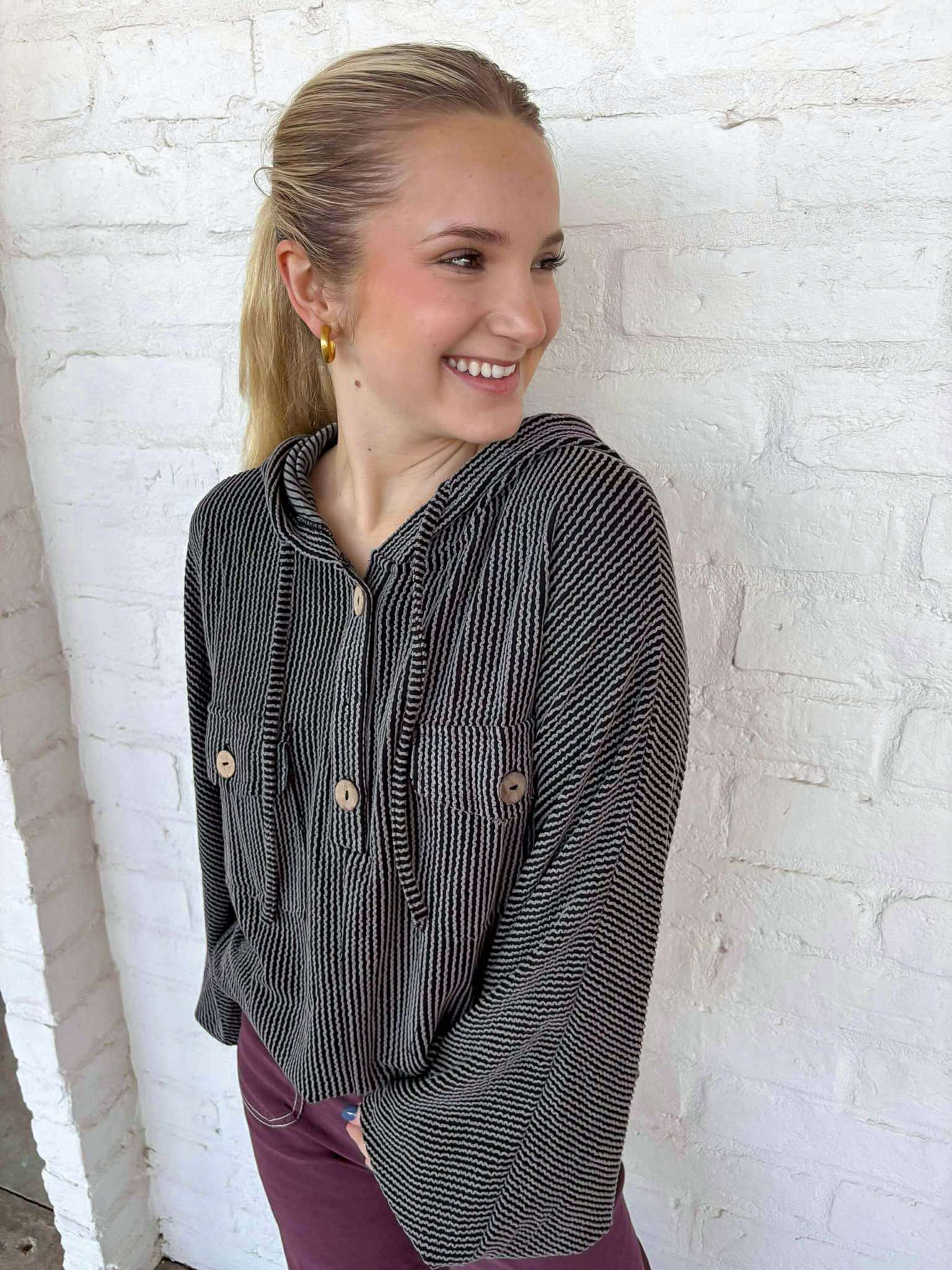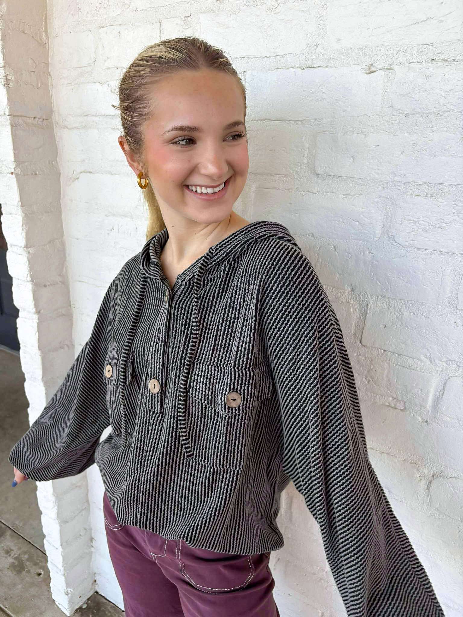 Stay warm and comfortable in our laid back hoodie. Designed for maximum coziness, this pullover hoodie is perfect for any casual occasion. Embrace the cool, relaxed style while staying warm on chilly days.