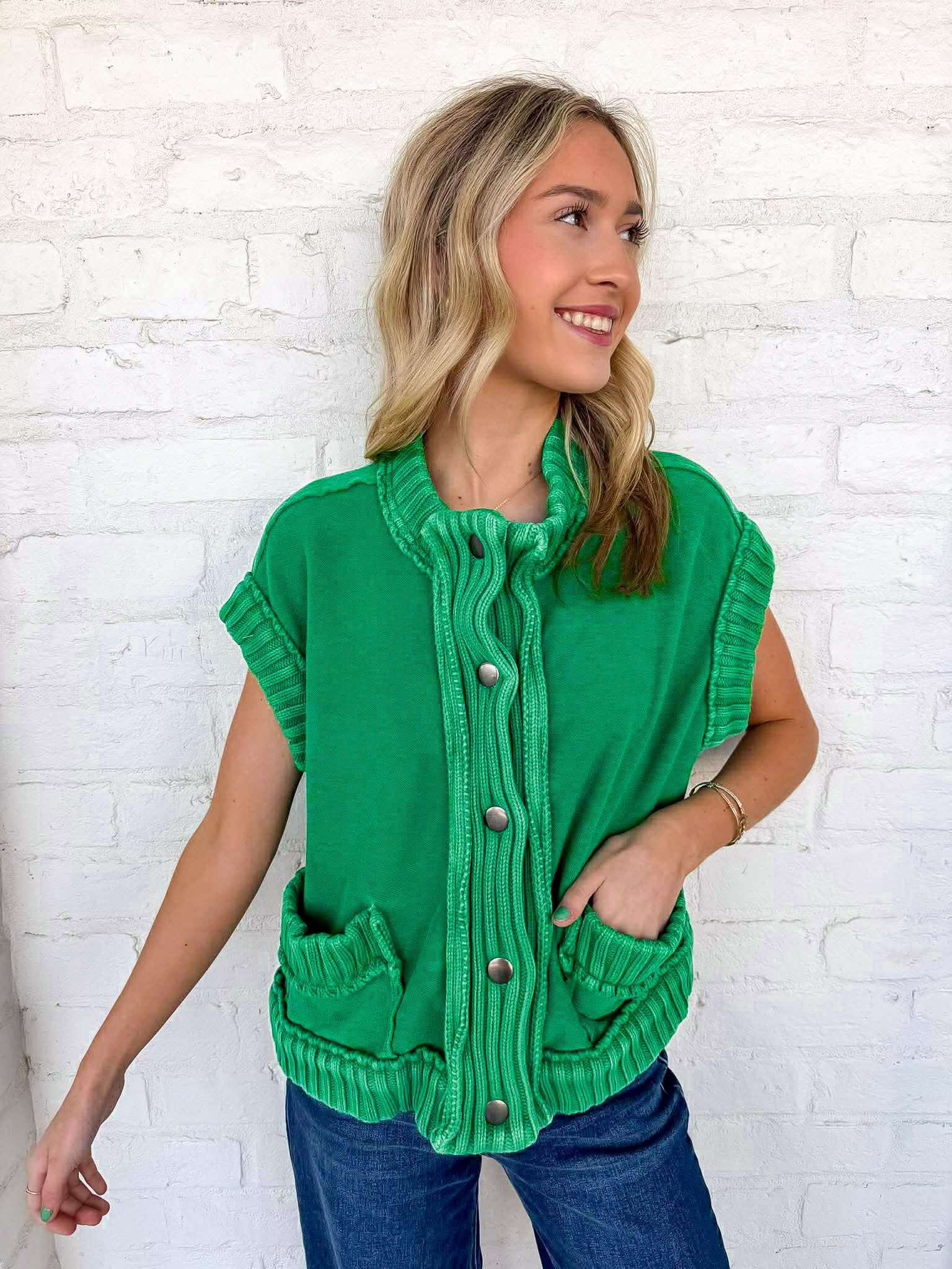 Still The Same Green Cardigan Vest