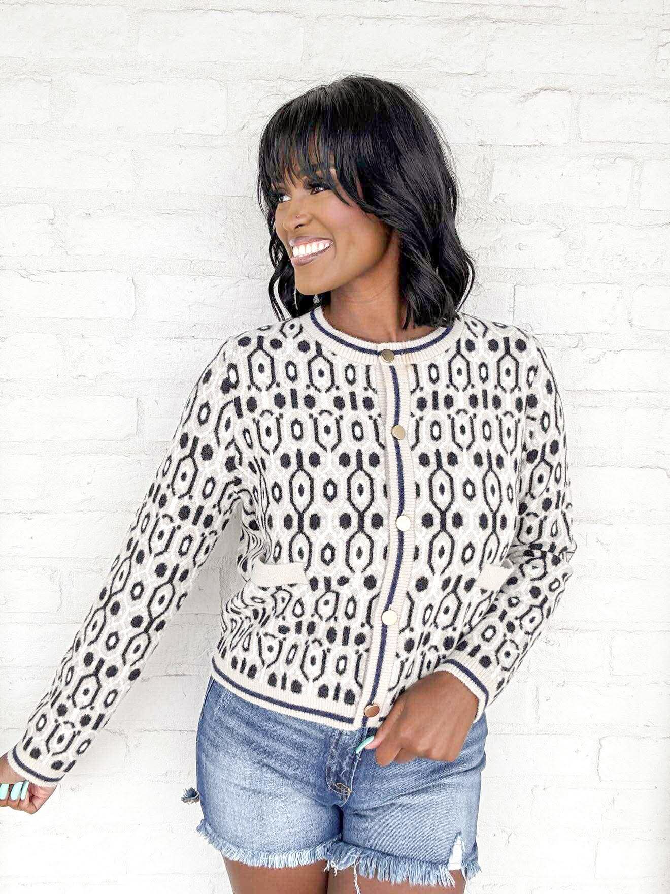 Experience cozy elegance with the THML I Feel Again Beige Cardigan. This abstract knit cardigan combines comfort and style, making it the perfect addition to any outfit. Stay warm and chic with this must-have seasonal piece.
