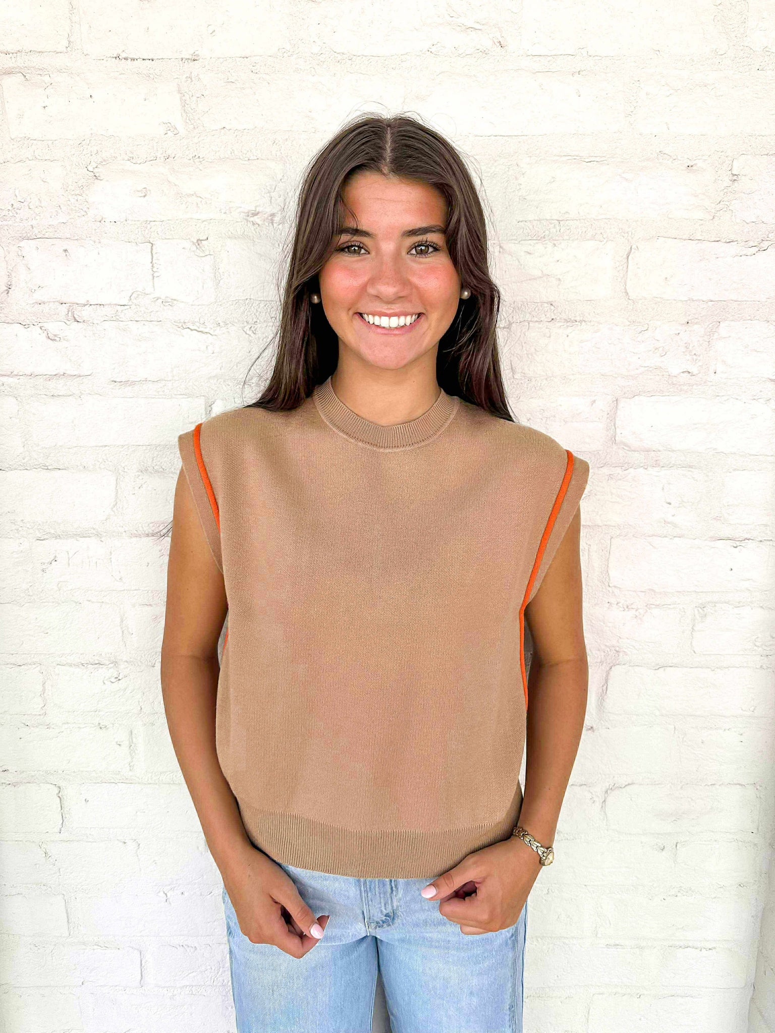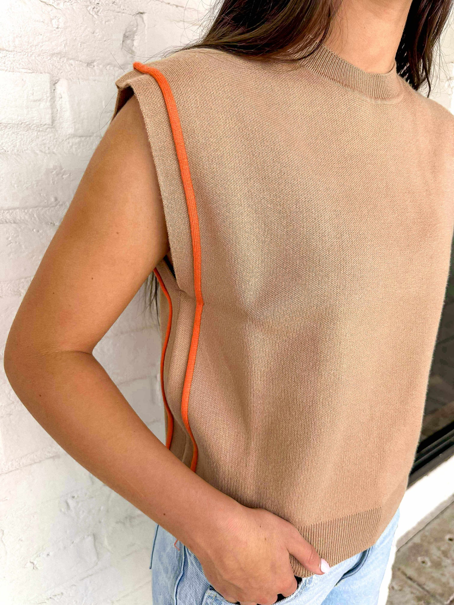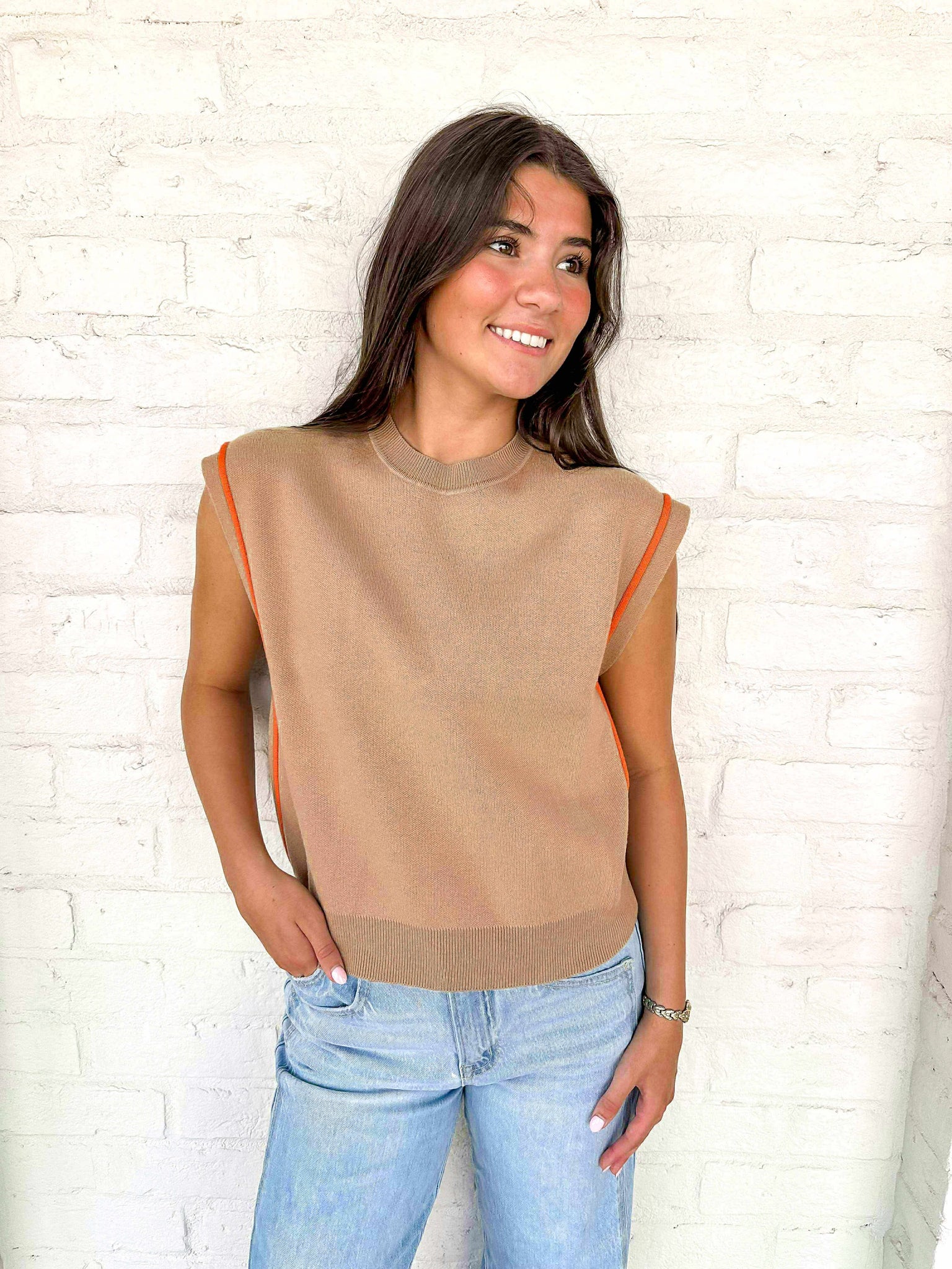 Feel confident and stylish in our THML Over Here Beige Top! This sleeveless knit top is perfect for any occasion, providing both comfort and fashion. Upgrade your wardrobe with this must-have piece.