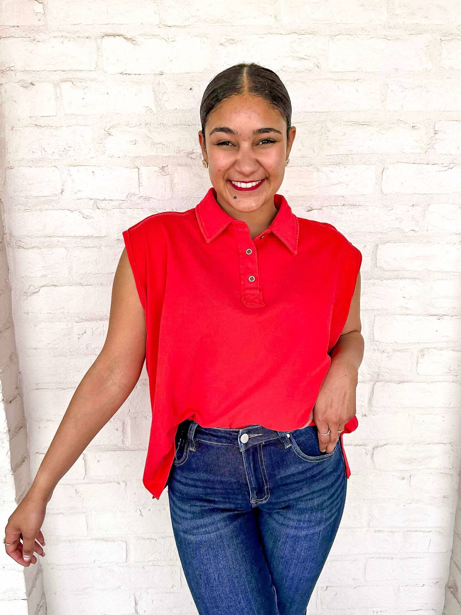 Discover the "Unknown Reasons" behind the perfect combination of comfort and style with our red oversized top. Featuring a chic collar design, this top will elevate any outfit and keep you looking and feeling confident all day long! Dare to make a statement and feel unstoppable in our top.