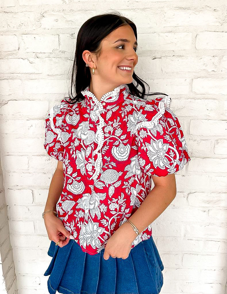 Brighten up your wardrobe with our Out Of Nowhere Red Top! Made from a vibrant red fabric, this stylish blouse is a versatile addition to your closet. Stand out from the crowd and add a pop of color to any outfit. Perfect for any occasion, this top will make you look and feel confident and stylish!
