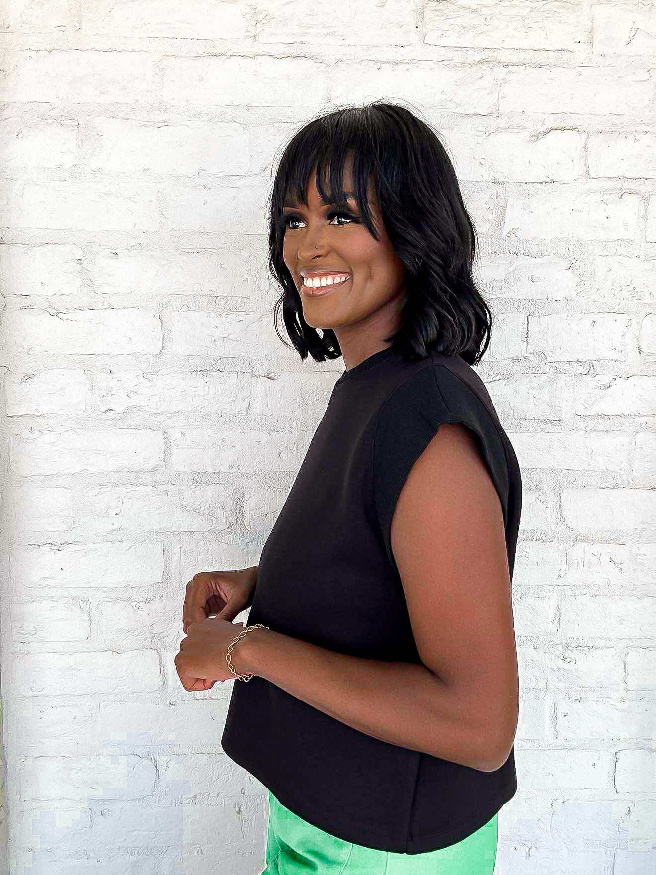 This black top is a must-have basic for any wardrobe. Versatile, comfortable, and stylish, it can be dressed up or down for any occasion. With its classic design and quality material, this top will surely become a staple in your closet.