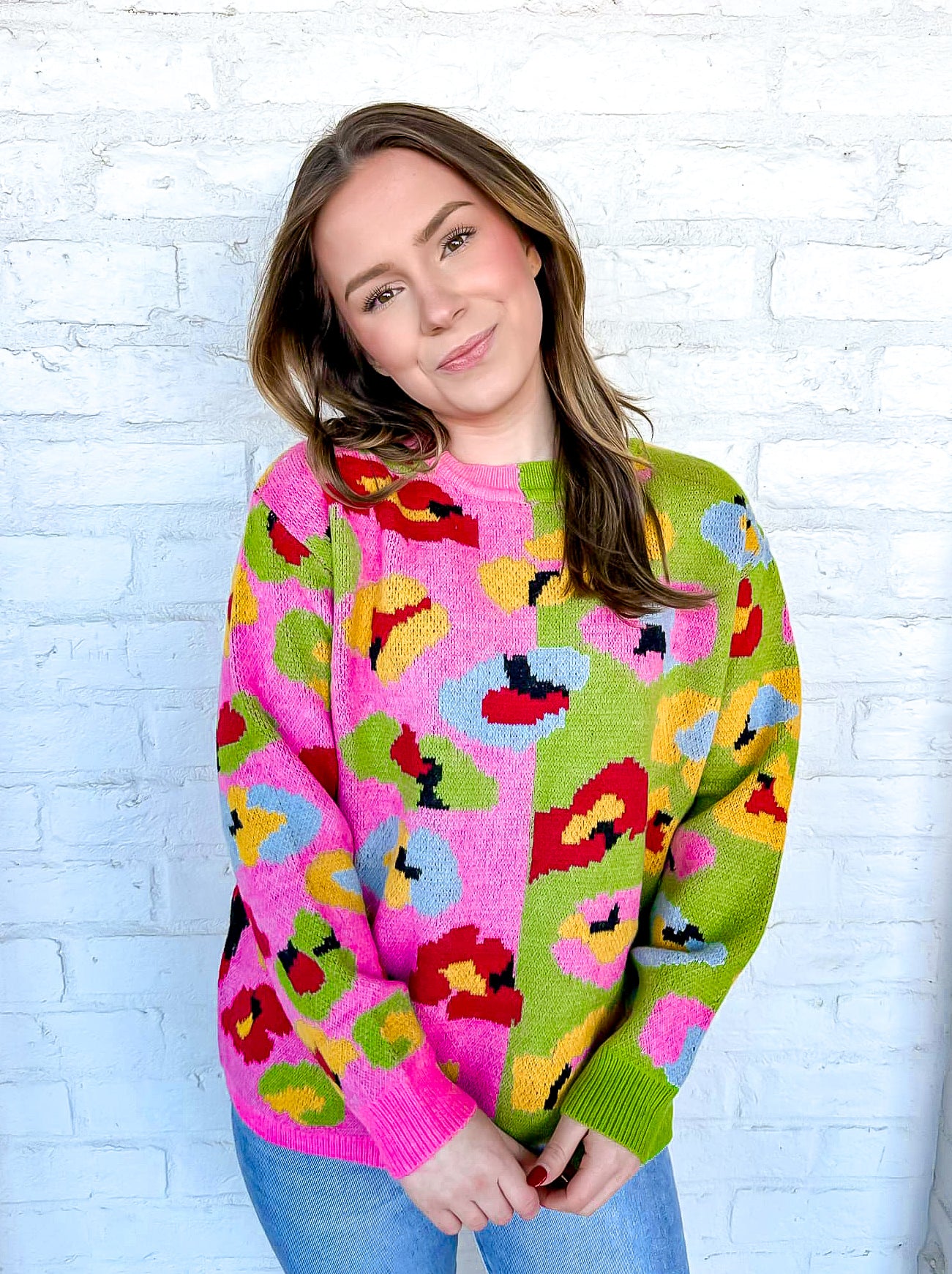 Experience the beauty of the world with our Around The World Pink Top! This animal printed sweater top features a mix of pink and green, adding a pop of color to your wardrobe. Stay stylish and comfortable with this versatile piece.