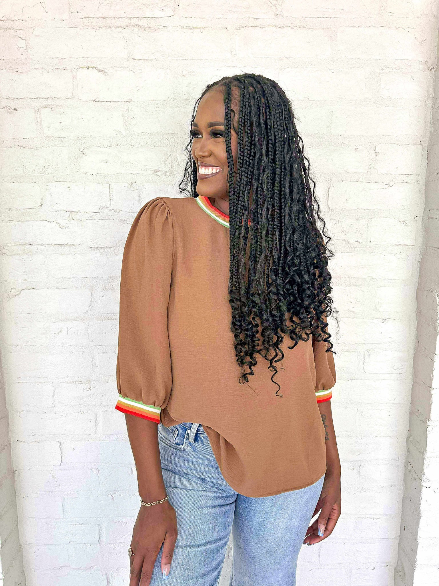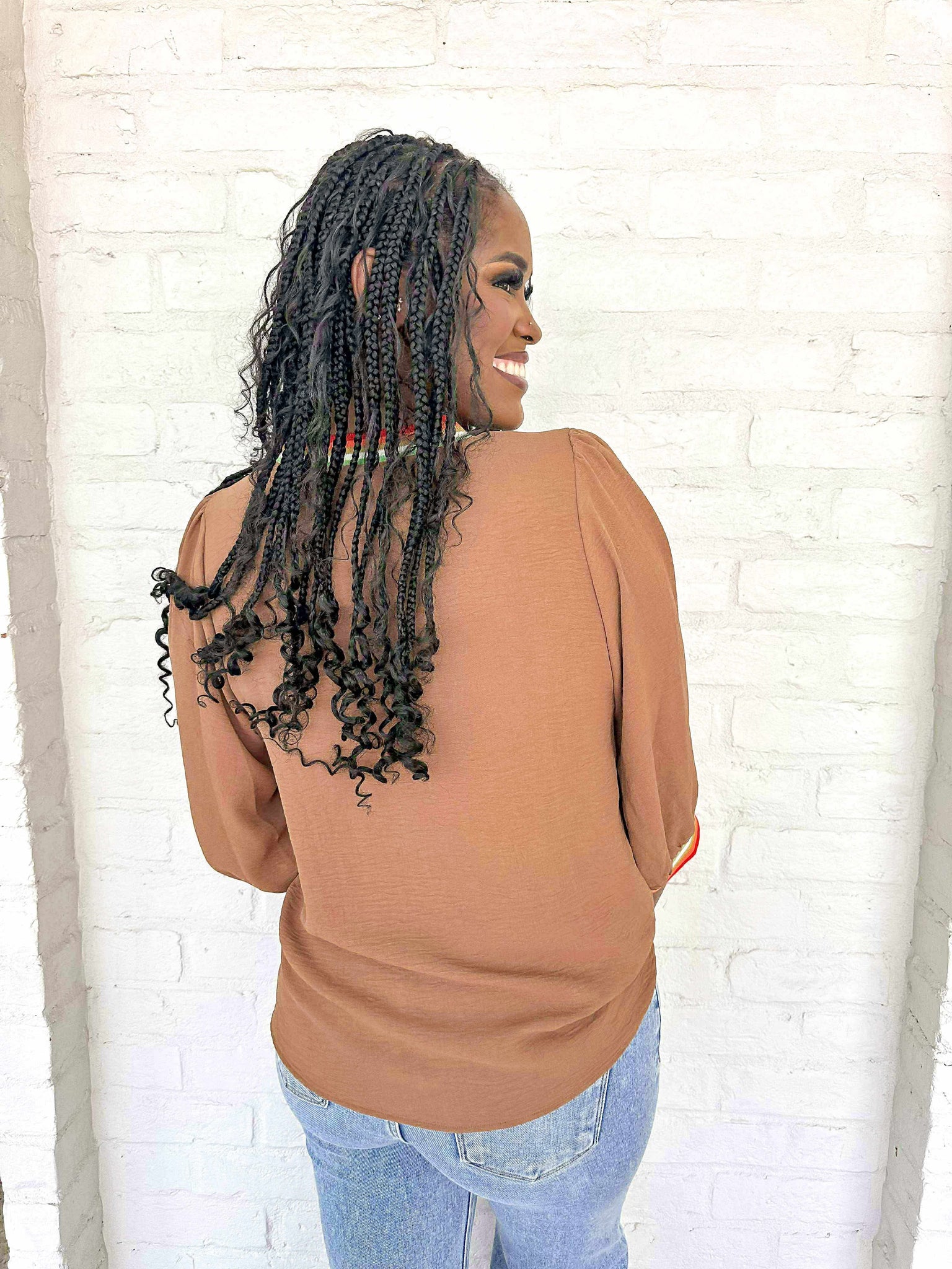 Elevate your wardrobe with our Carry On Mocha Top! Perfect for any occasion, this basic dressy top is a must-have for any fashion-forward individual. Versatile and stylish, it's the perfect addition to any outfit. Get ready to turn heads and feel confident in our top.