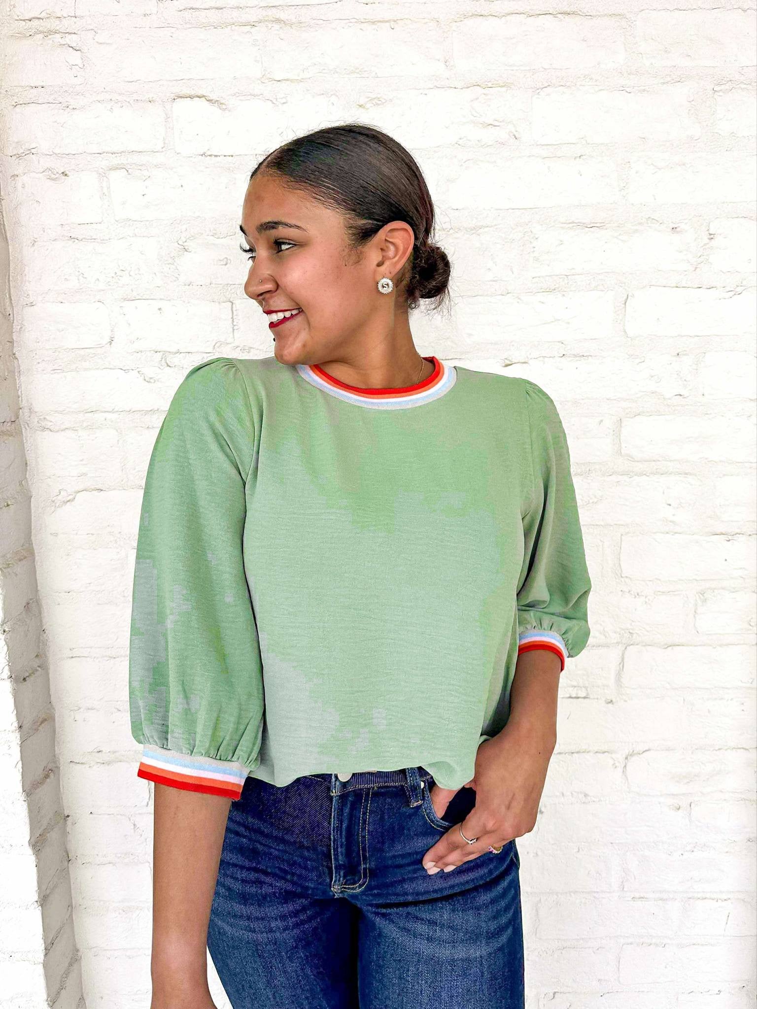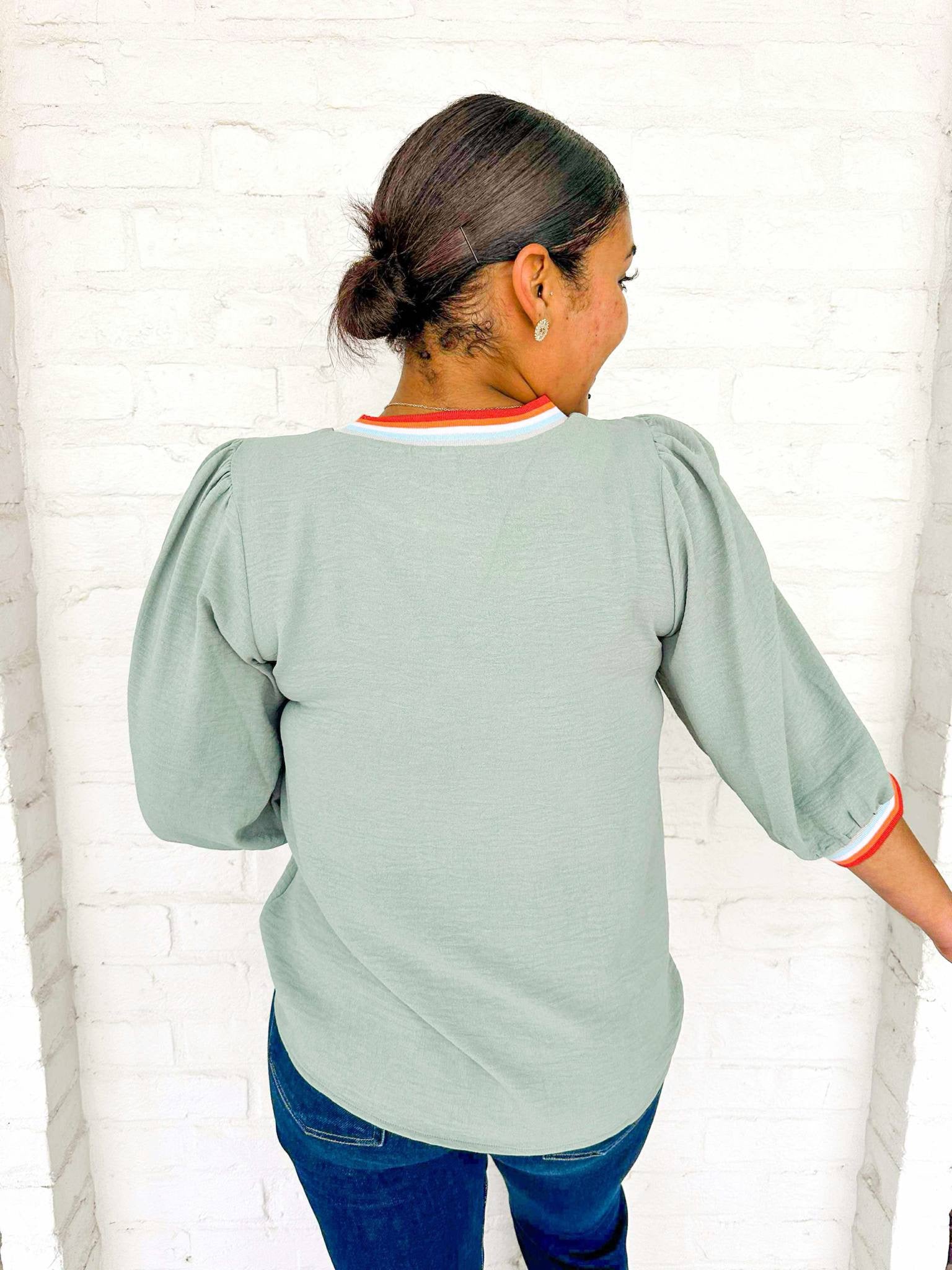 Upgrade your wardrobe with our new Carry On Sage Top. This stylish blouse in a beautiful sage green will elevate any outfit. Stay on trend while feeling confident and comfortable!