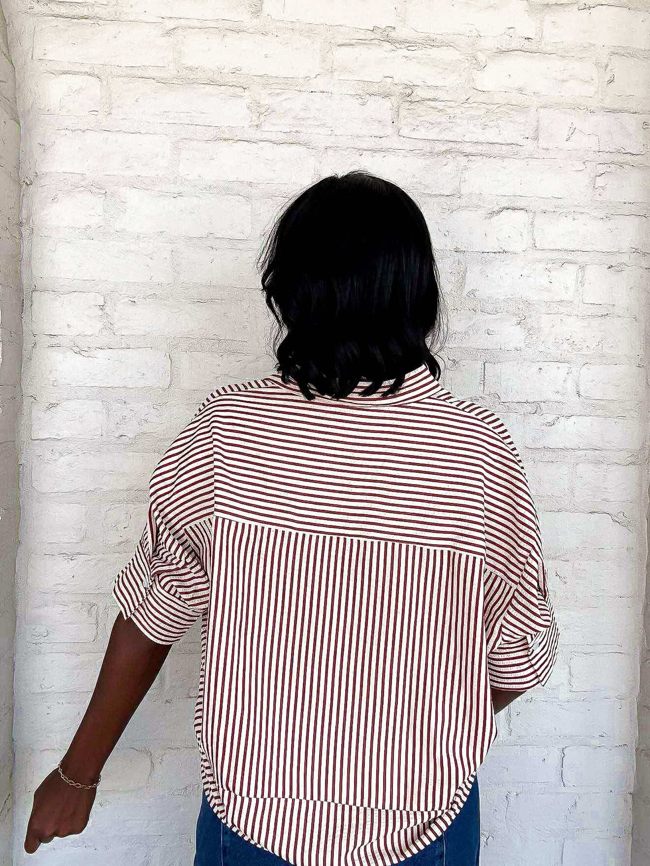 Transform your wardrobe with the Change Your Mind Brick Top featuring a striking stripe design. This top will add a unique touch to your outfit and elevate your style to the next level. Embrace individuality and turn heads with this statement piece.