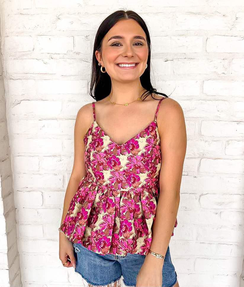 Experience the beauty of our Hello My Dear Pink Top! Adorned with delicate pink flowers, this top is sure to make you stand out. Perfect for any occasion, its vibrant colors will brighten up your day and make you feel confident and beautiful. Don't miss out on this stunning piece!