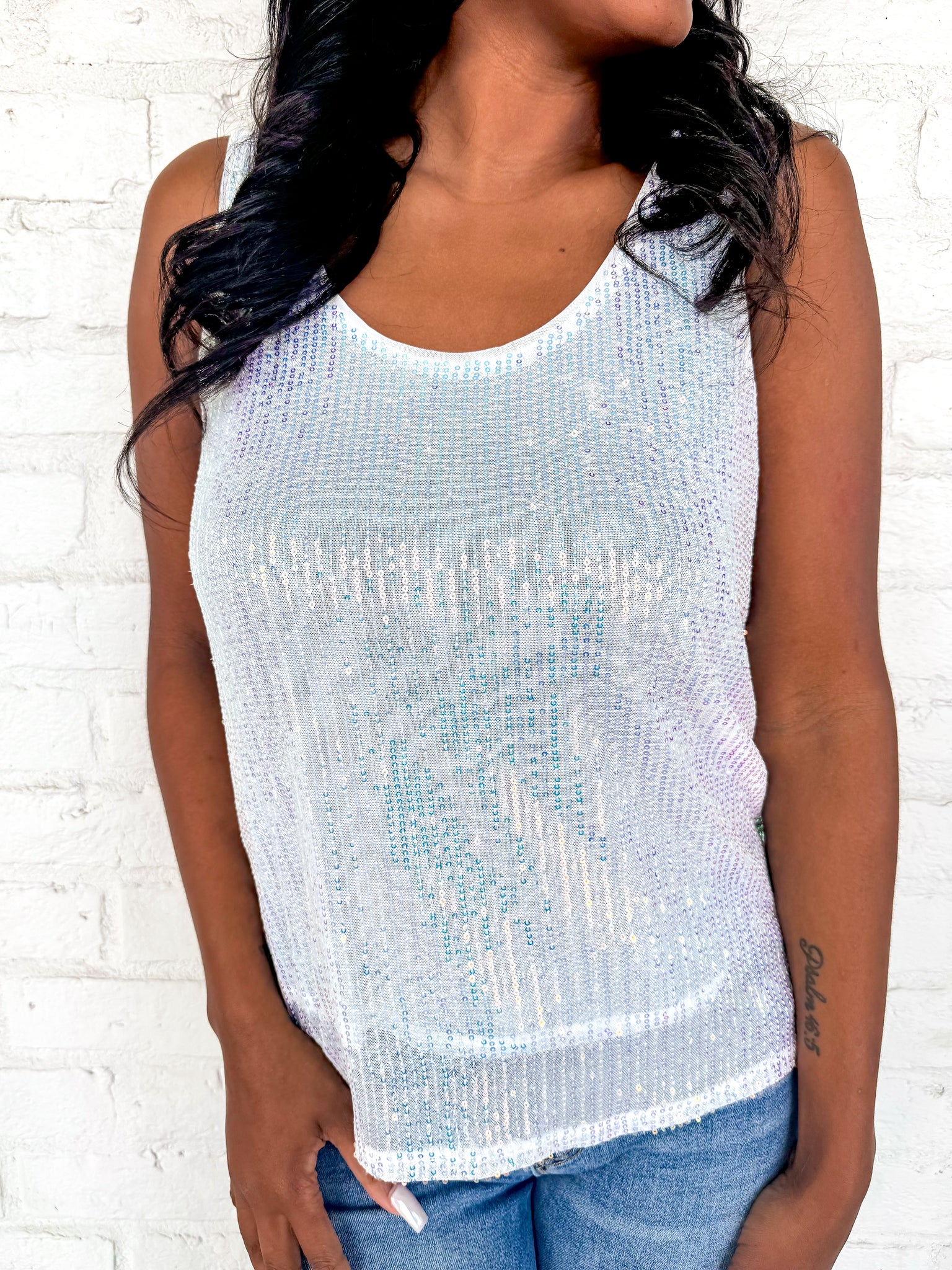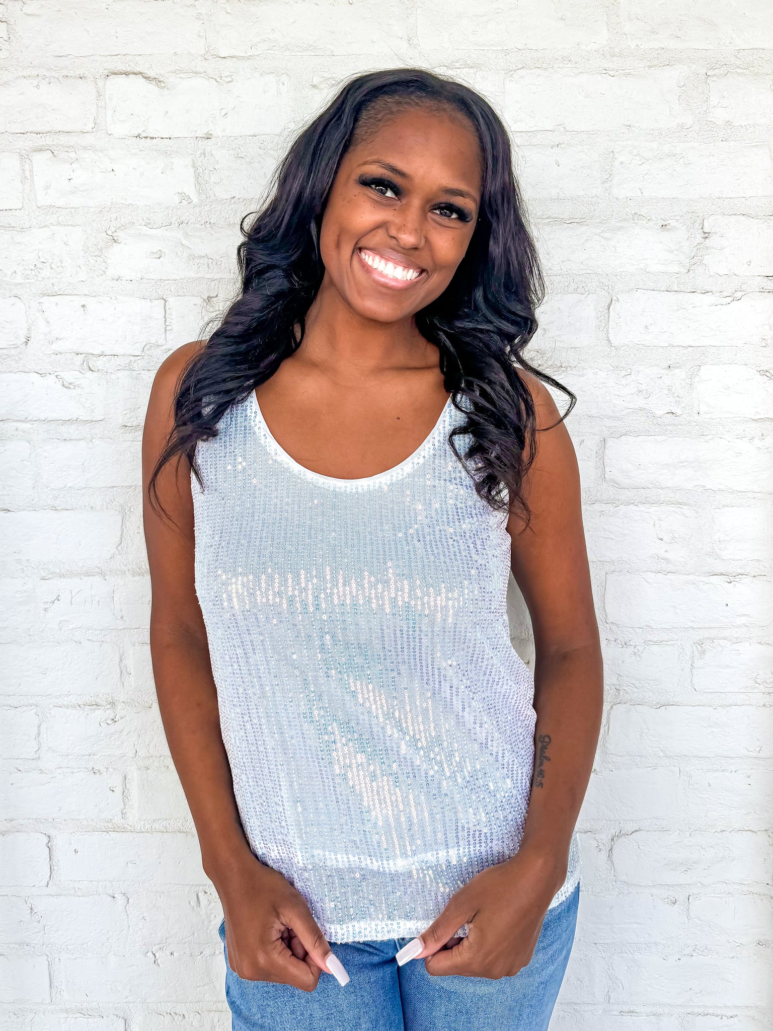 Experience the excitement of the night with our "Here For The Fun Top"! This scoop neck, sleeveless tank top features intricate embroidery and sparkling sequins that will catch everyone's eyes. Perfect for parties, concerts, or a night out. Stand out in style and make unforgettable memories.