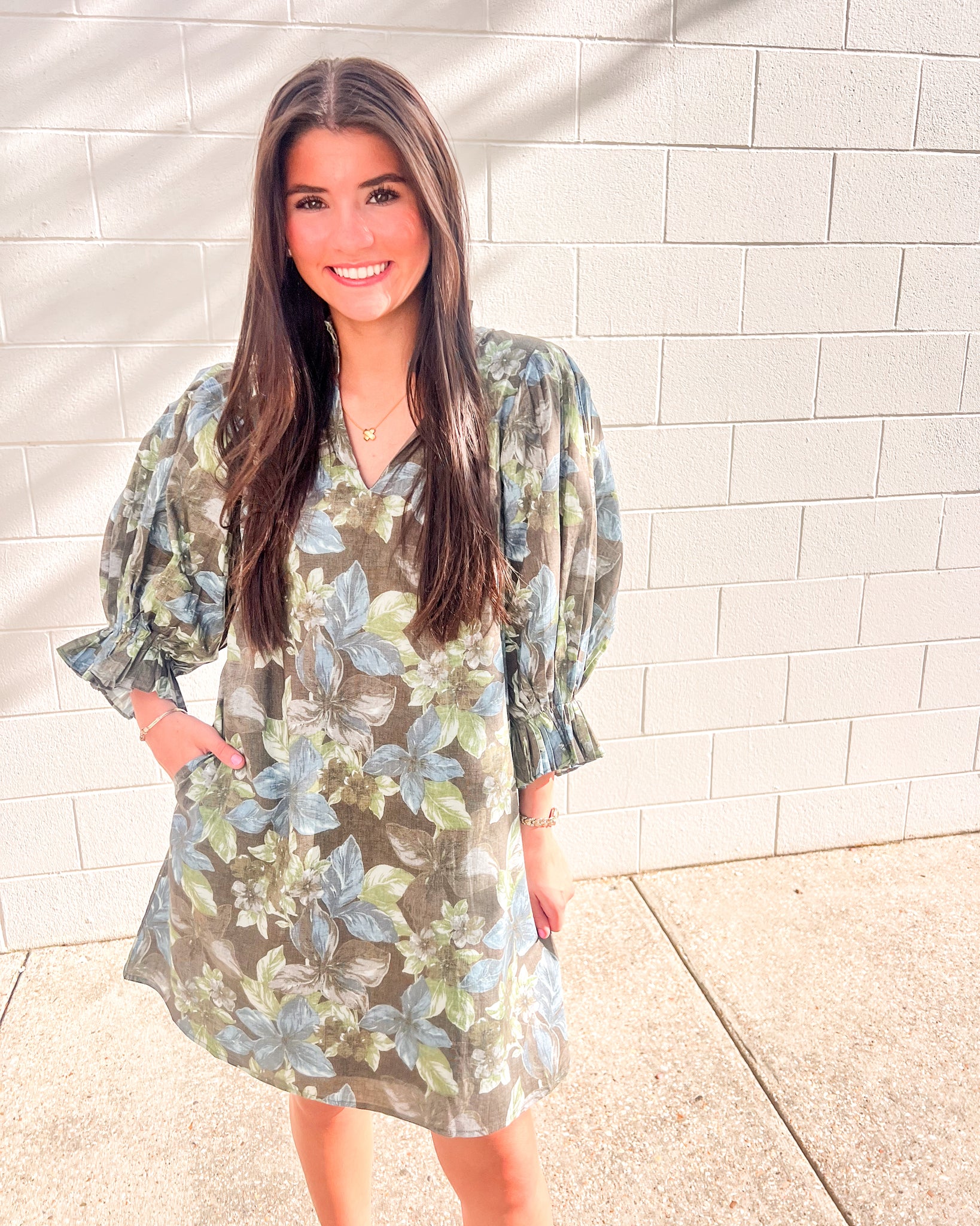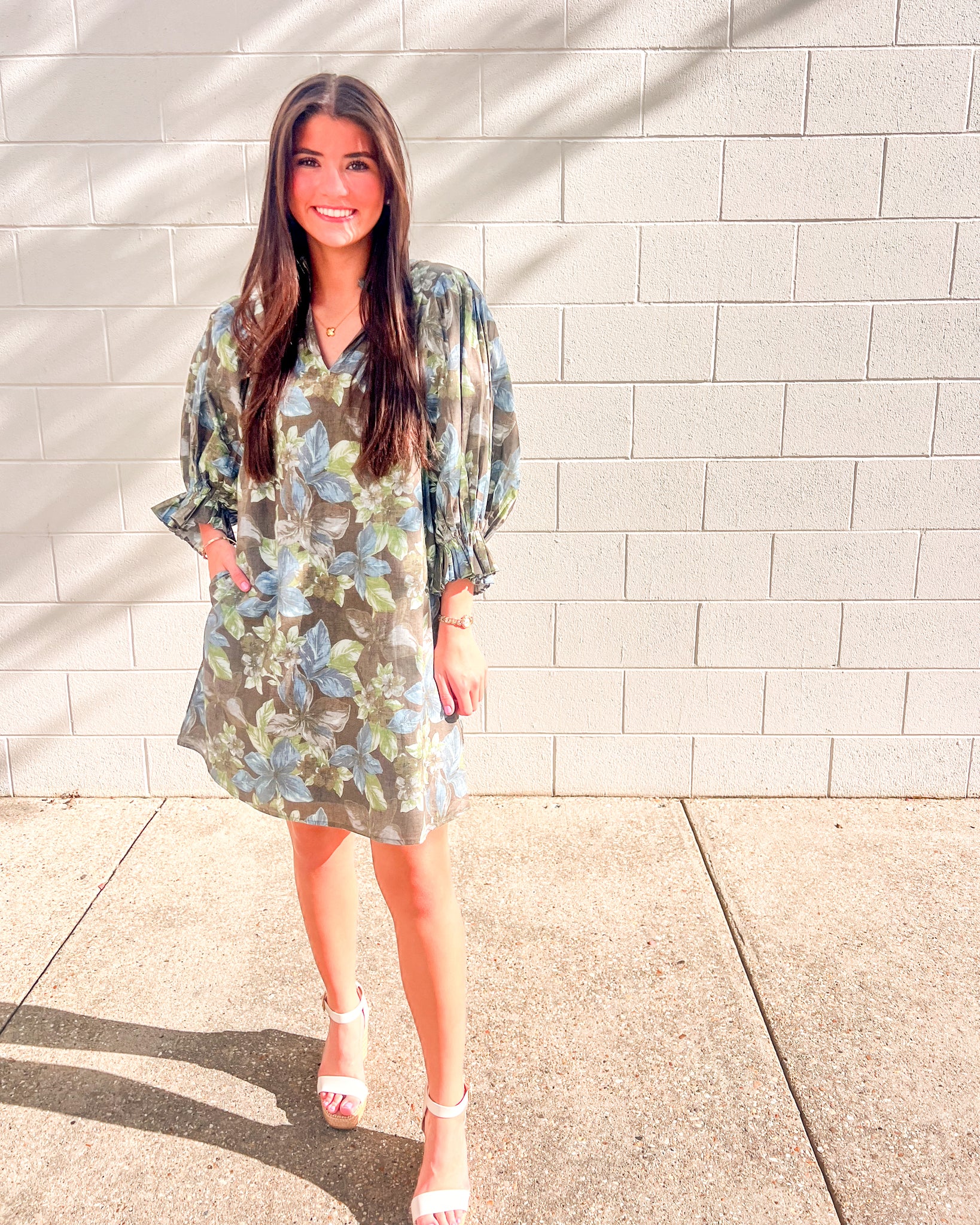 Effortlessly chic, the Green & Blue Floral Print Mini Dress combines relaxed comfort with standout style. Designed with a soft floral pattern in shades of green and blue, this dress features a split neckline, long puff sleeves, and a flowy silhouette that flatters every figure. Side pockets add function, while the lightweight fabric makes it perfect for year-round wear.